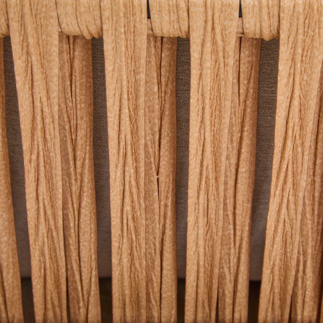 Modern Minimalist Design: Sleek iron frame with rope-accented backrest and armrests in a neutral beige tone for a versatile, elegant look.