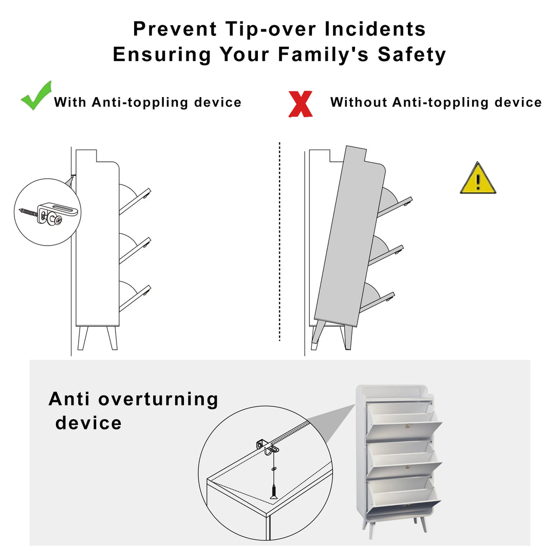 This mirror shoe cabinet combines functionality and style, featuring three flip-tier drawers that store up to 18 pairs of shoes. The built-in mirror offers convenience for outfit checks, while hooks and a hanger rod help organize coats and accessories. Crafted from MDF and glass, its sleek white design fits neatly in entryways or hallways. The dual-layer shelves adjust to accommodate larger footwear, and the tabletop provides extra space for daily essentials.