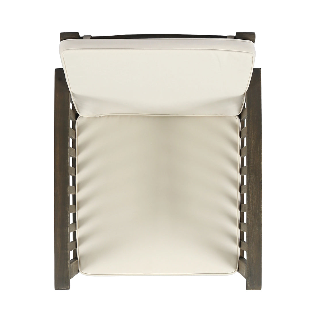 Elevate your outdoor living with this set of two CASA ACACIA CLUB CHAIRS. Crafted from durable acacia wood and topped with waterproof polyester cushions, these chairs blend coastal charm with tropical resilience. The deep seat and wide slatted design offer both comfort and style, making them perfect for year-round use in gardens, patios, or poolside. Their handcrafted details and gray wood finish paired with cream cushions create a sophisticated look for any backyard barbecue or casual gathering.
