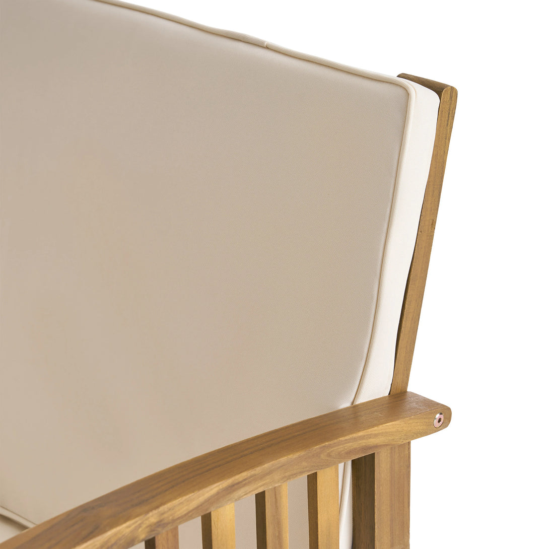Elevate your outdoor living with this set of two CASA ACACIA CLUB CHAIRS. Crafted from durable acacia wood and topped with waterproof polyester cushions, these chairs blend coastal charm with tropical resilience. The deep seat and wide slatted design offer both comfort and style, making them perfect for year-round use in gardens, patios, or poolside. Their handcrafted details and gray wood finish paired with cream cushions create a sophisticated look for any backyard barbecue or casual gathering.