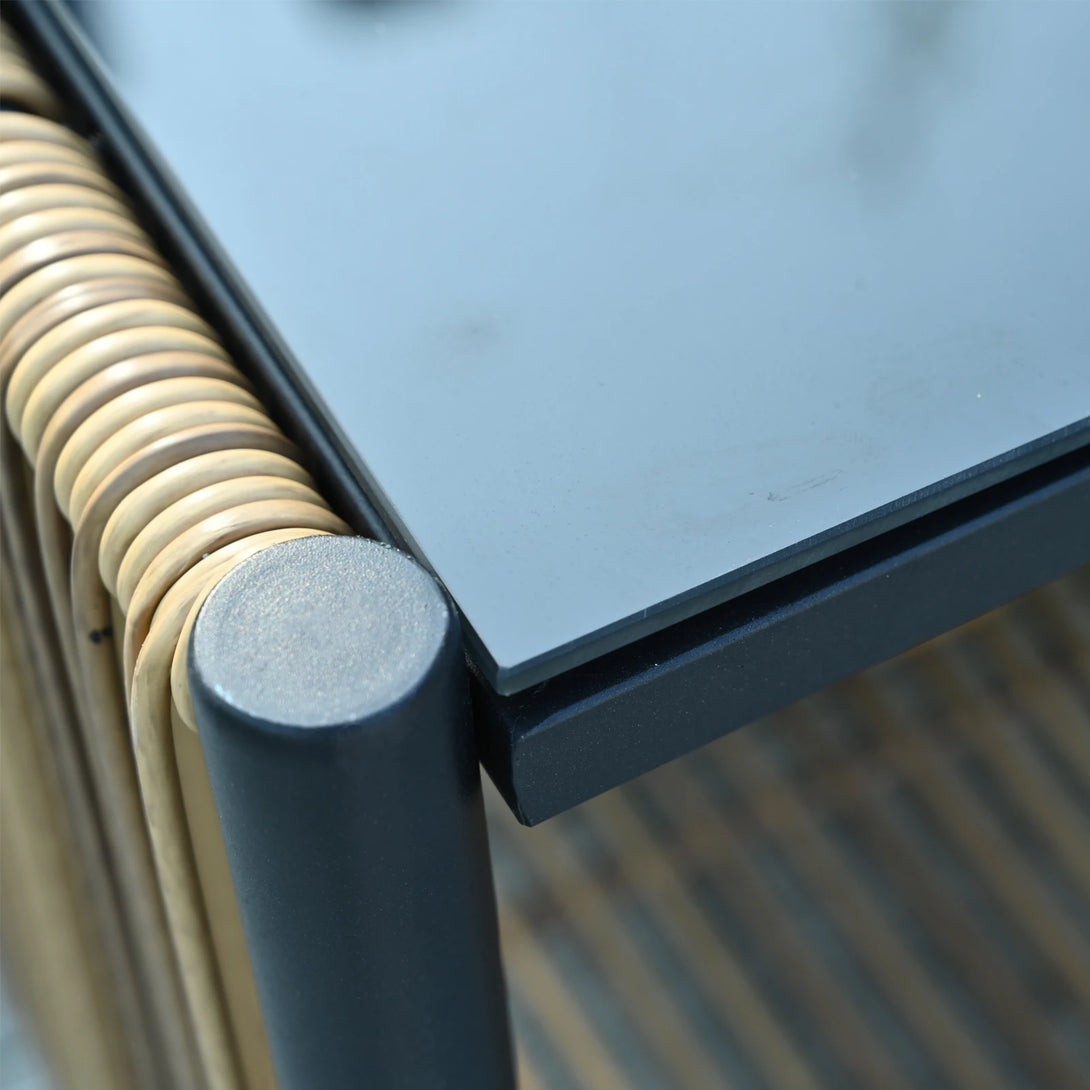 Introducing the modern outdoor sofa set, crafted from durable steel and handwoven PE rattan for superior weather resistance. This complete 2-seater set includes plush grey cushions with high-resilience foam for comfort and a rectangular coffee table with tempered glass and storage. Ideal for garden and patio use, it combines minimalist design with practical features like removable, washable covers. Easy to assemble and maintain, it enhances any outdoor space with style and functionality.