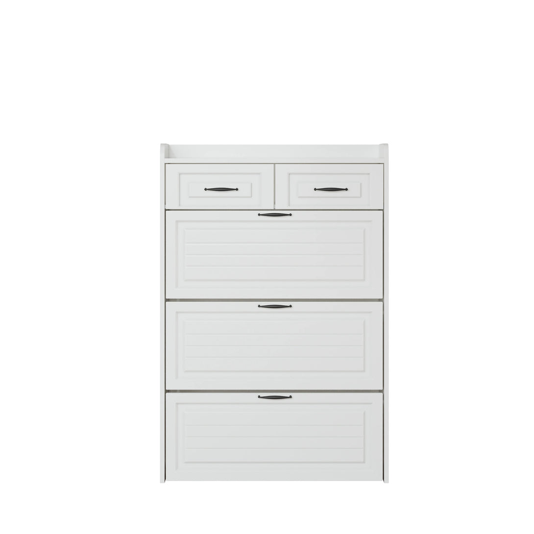 Storage Design: Multiple drawers with two-position adjustable shelves for different shoe types; removable shelves for tall boots or heels.