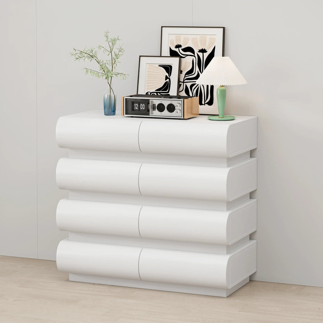 Perfect For: Organizing personal essentials or household items, this minimalist modern dresser with 8 spacious drawers offers a sleek and functional storage solution for any room.