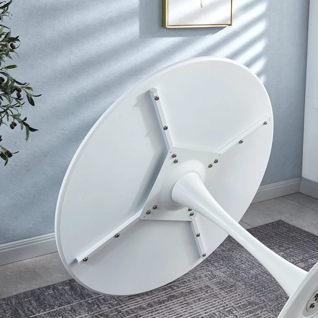 The tabletop features a smooth white finish, offering a sleek sense of modernity while being easy to clean.