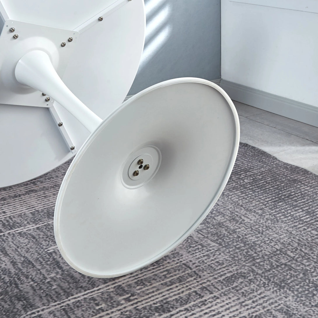 This round coffee table features a smooth white tabletop for a modern look and easy cleaning. Supported by a central pedestal, it offers a minimalist design that saves space. Perfect for living rooms, lounges, or offices.