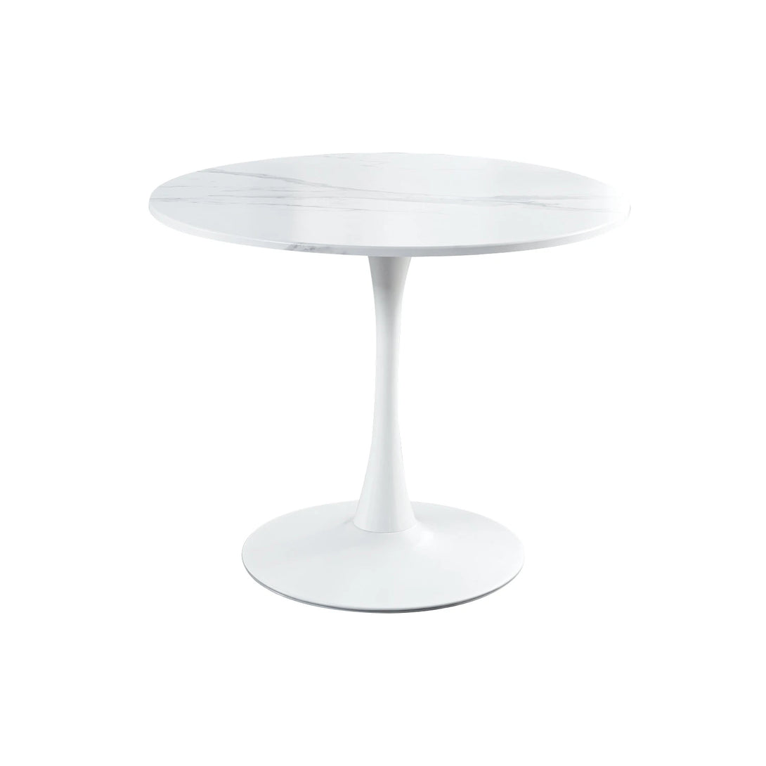 The tabletop features a smooth white finish, offering a sleek sense of modernity while being easy to clean.