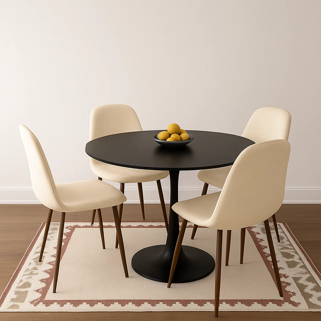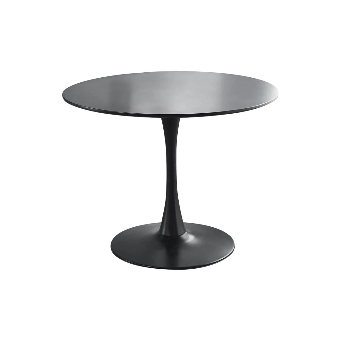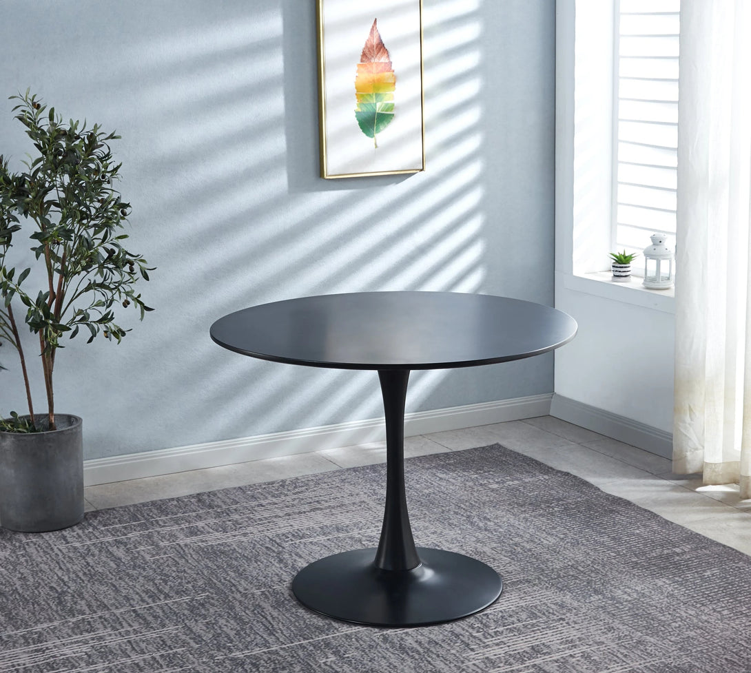 The tabletop features a smooth black finish, offering a sleek sense of modernity while being easy to clean.