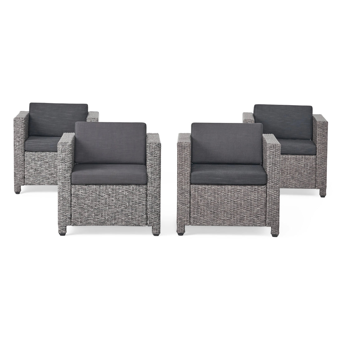 Material: Faux rattan frame with water-resistant polyester cushions for durability and comfort.