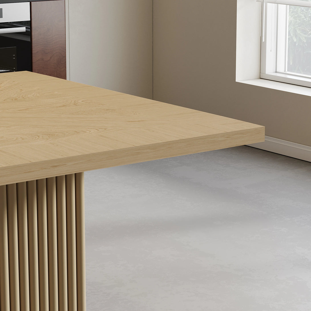 Legs: Square column legs with a vertical ribbed design, adding both visual texture and stable support.