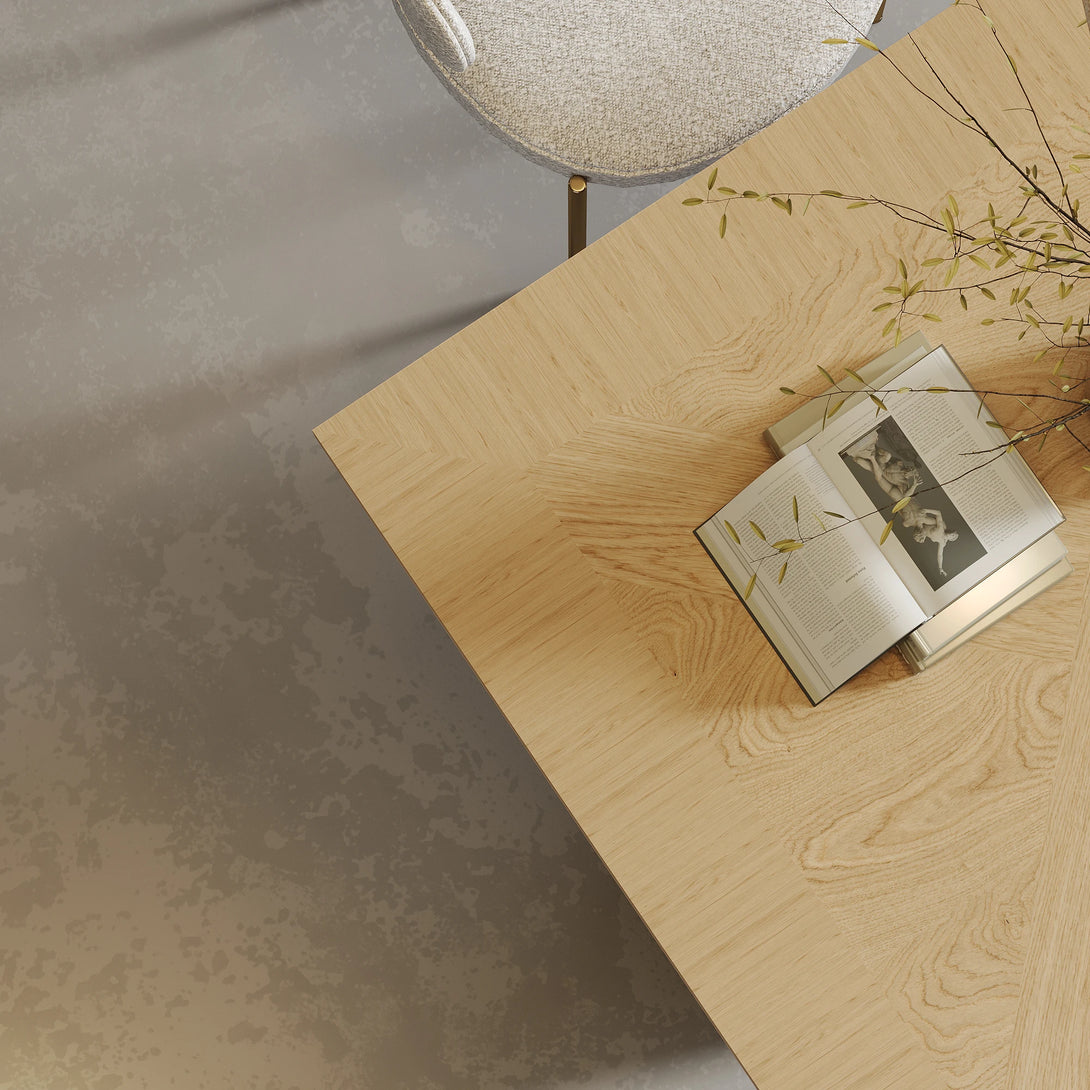 Tabletop: Square design crafted from light-colored wood, showcasing the natural grain for a warm and organic look.