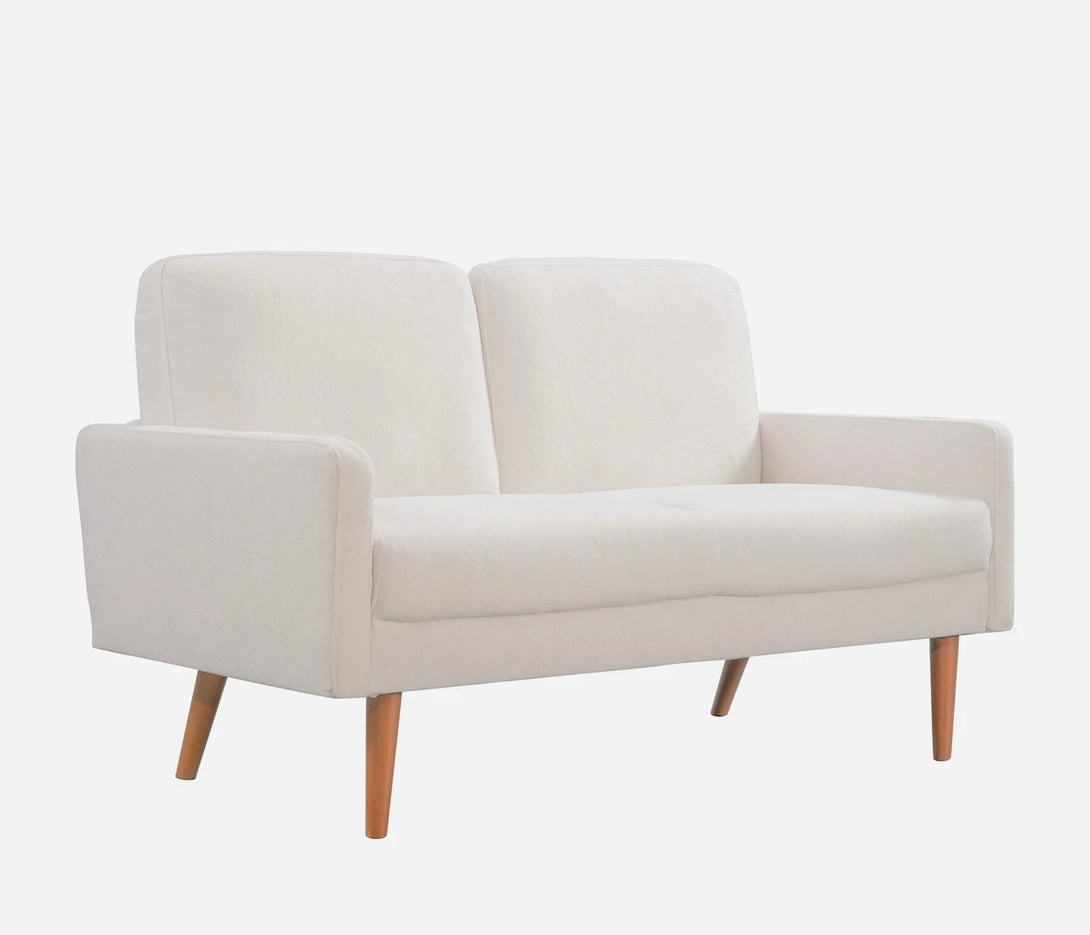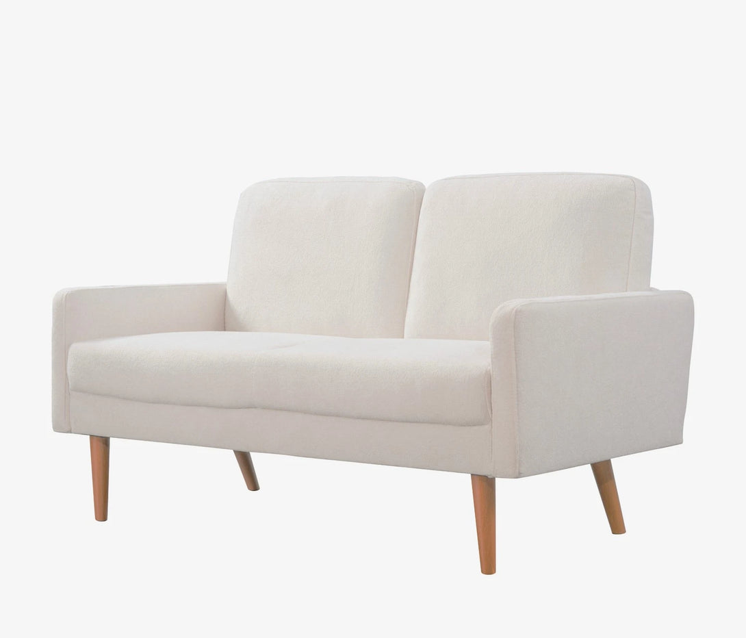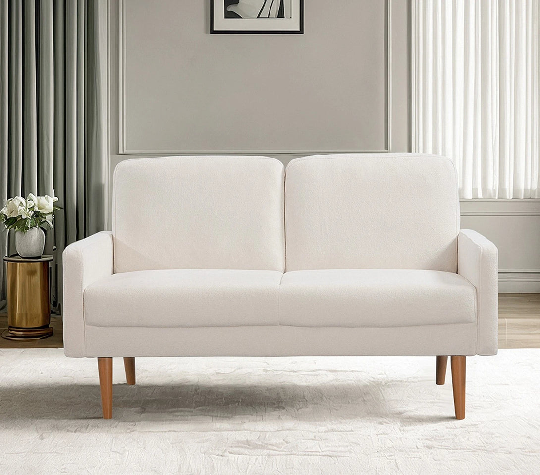 Material: Luxurious ivory velvet upholstery with tapered rubber wood legs.Dimensions: 55.5"L x 30"W x 33"H – compact yet spacious for two.Perfect For: Elevating living rooms, apartments, or offices with its blend of modern-vintage European flair and plush comfort.
