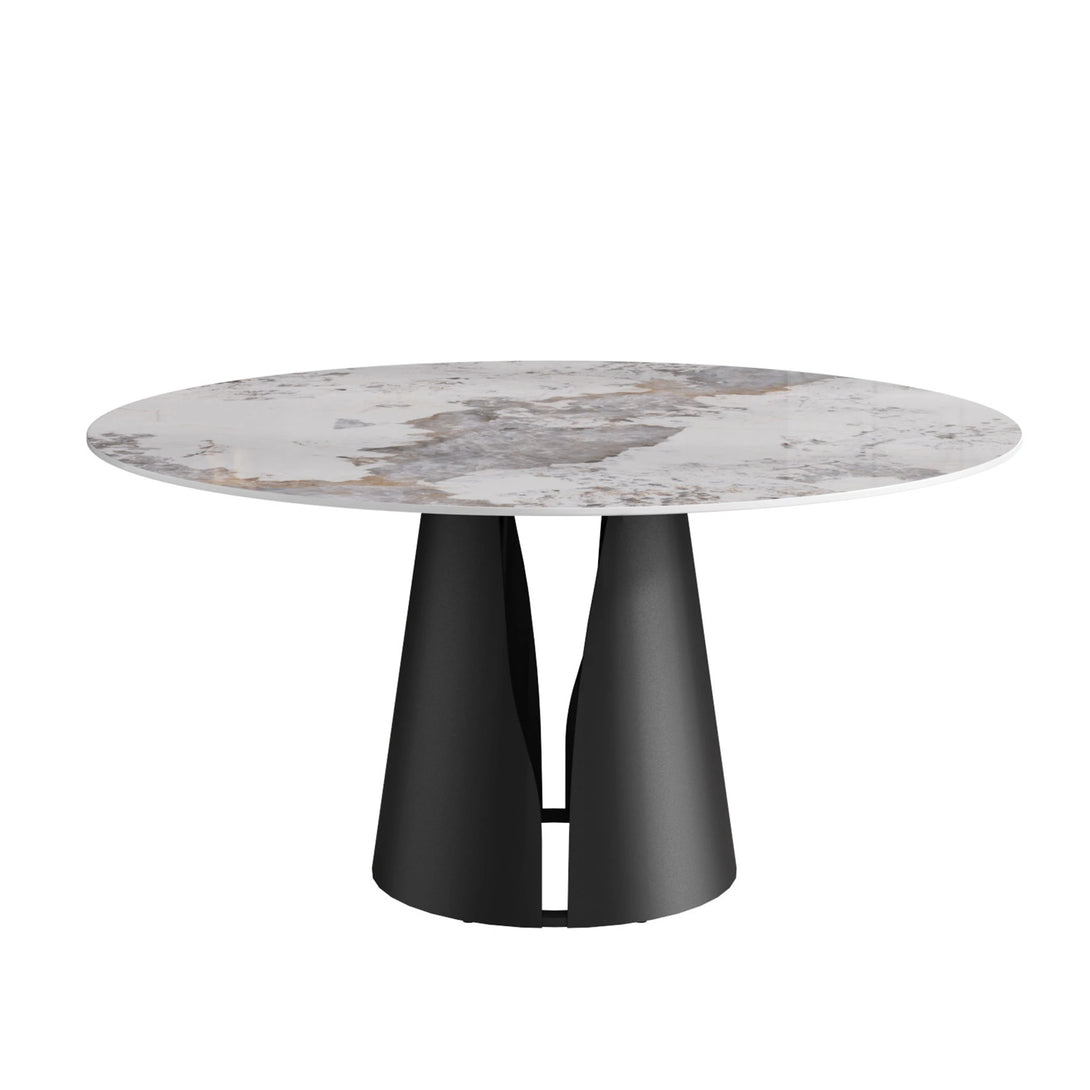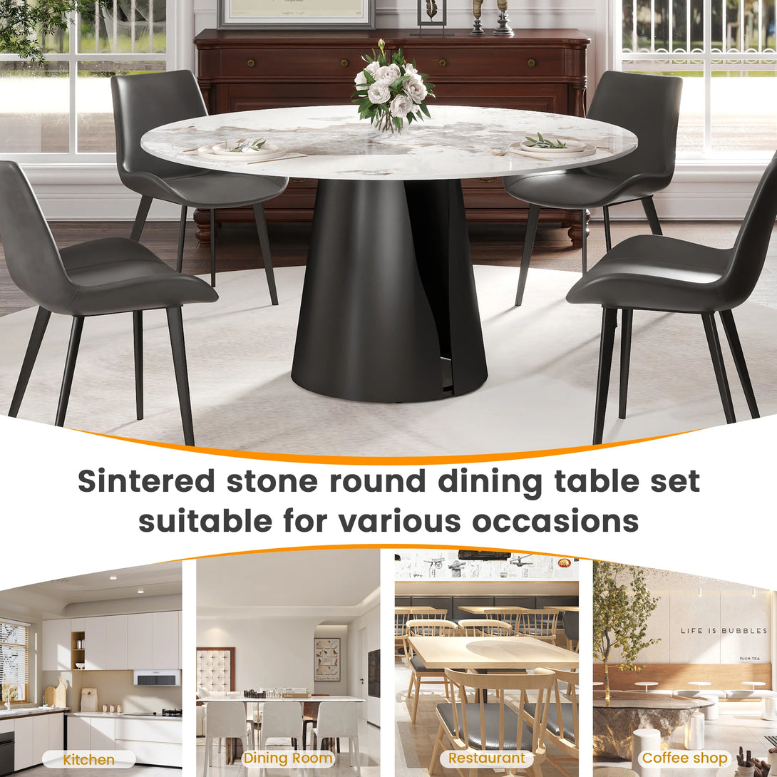 Material: Sintered stone tabletop + black carbon steel base (heat/fire/stain-resistant, easy to clean).