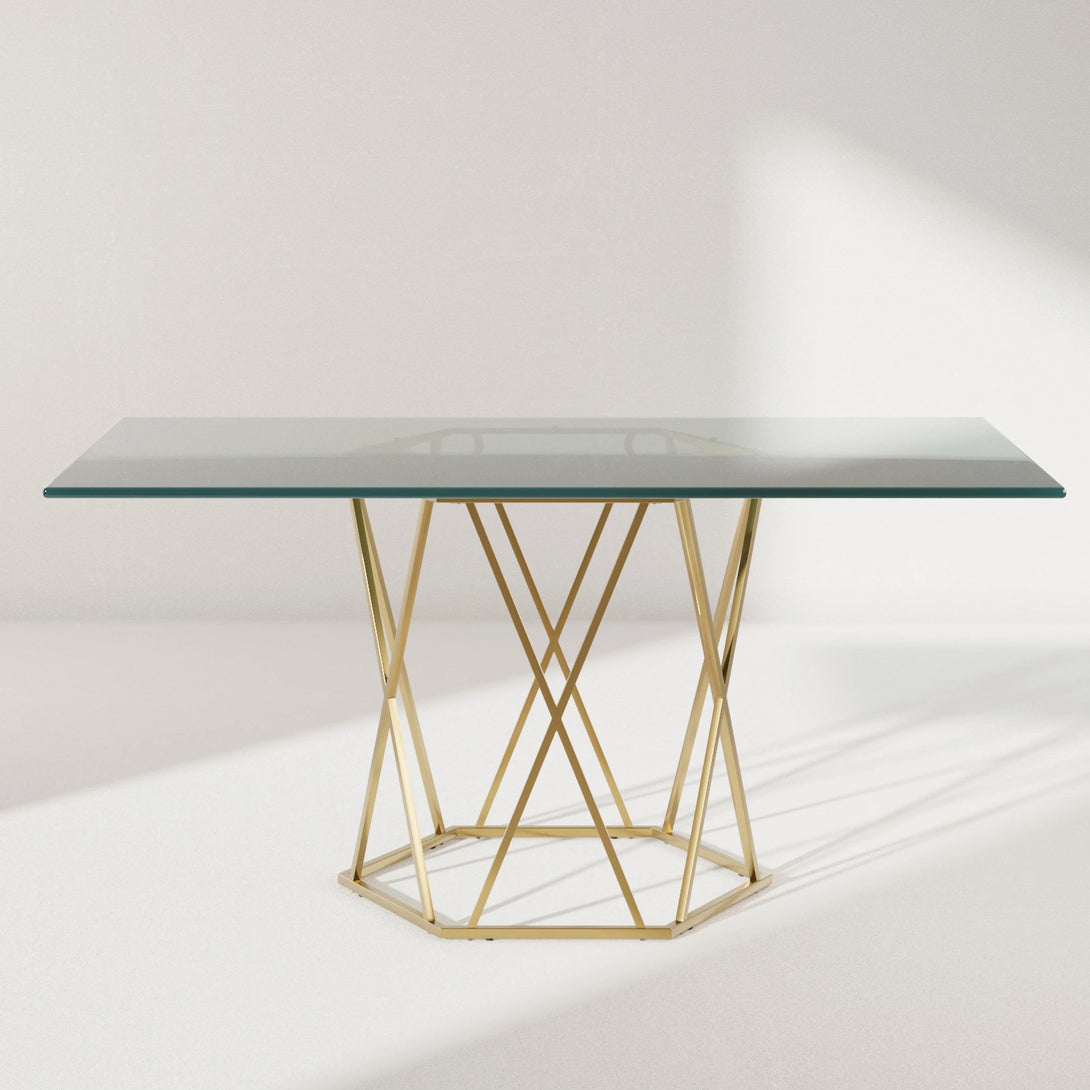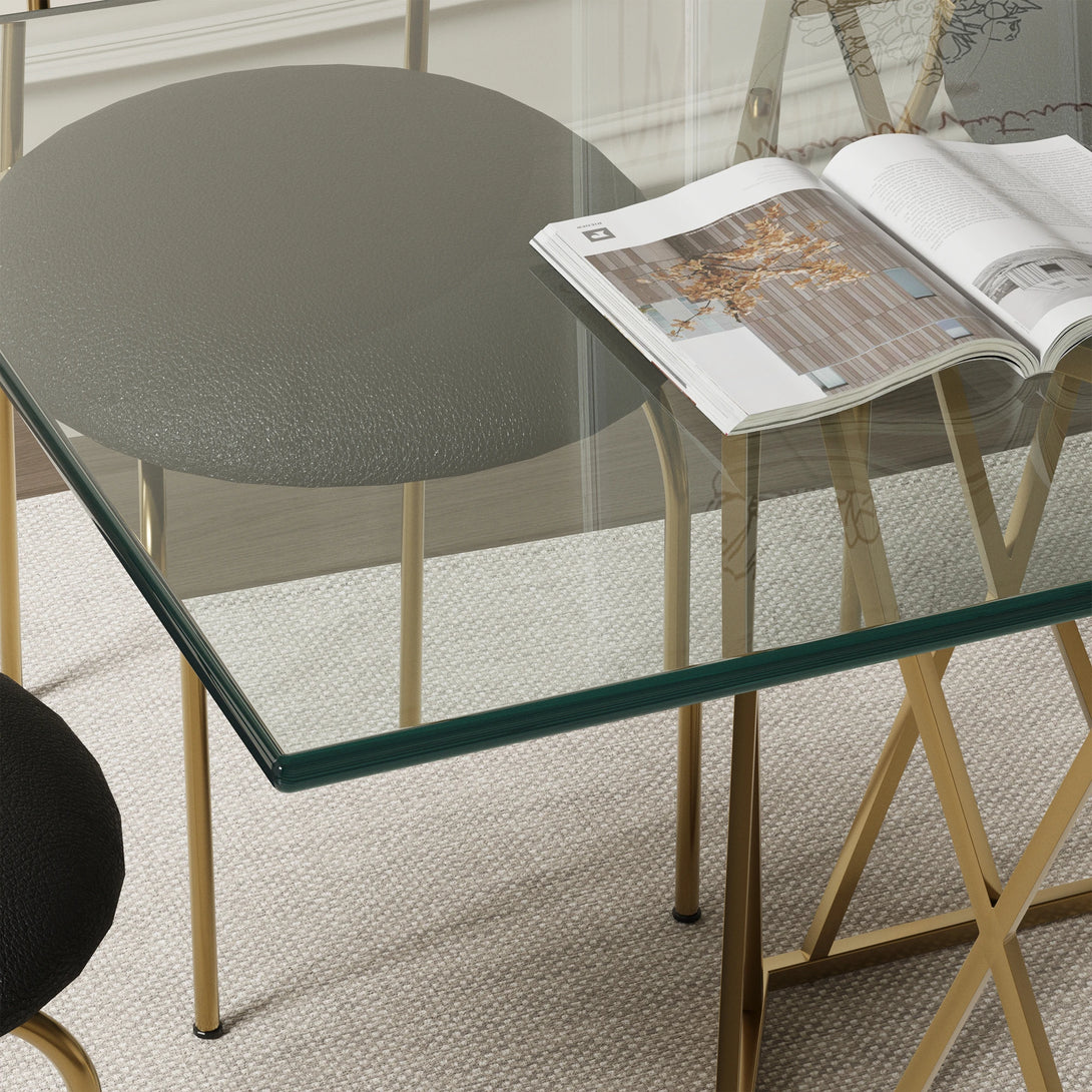 High-Quality Materials: Clear glass tabletop combined with a golden metal frame for both durability and elegance.