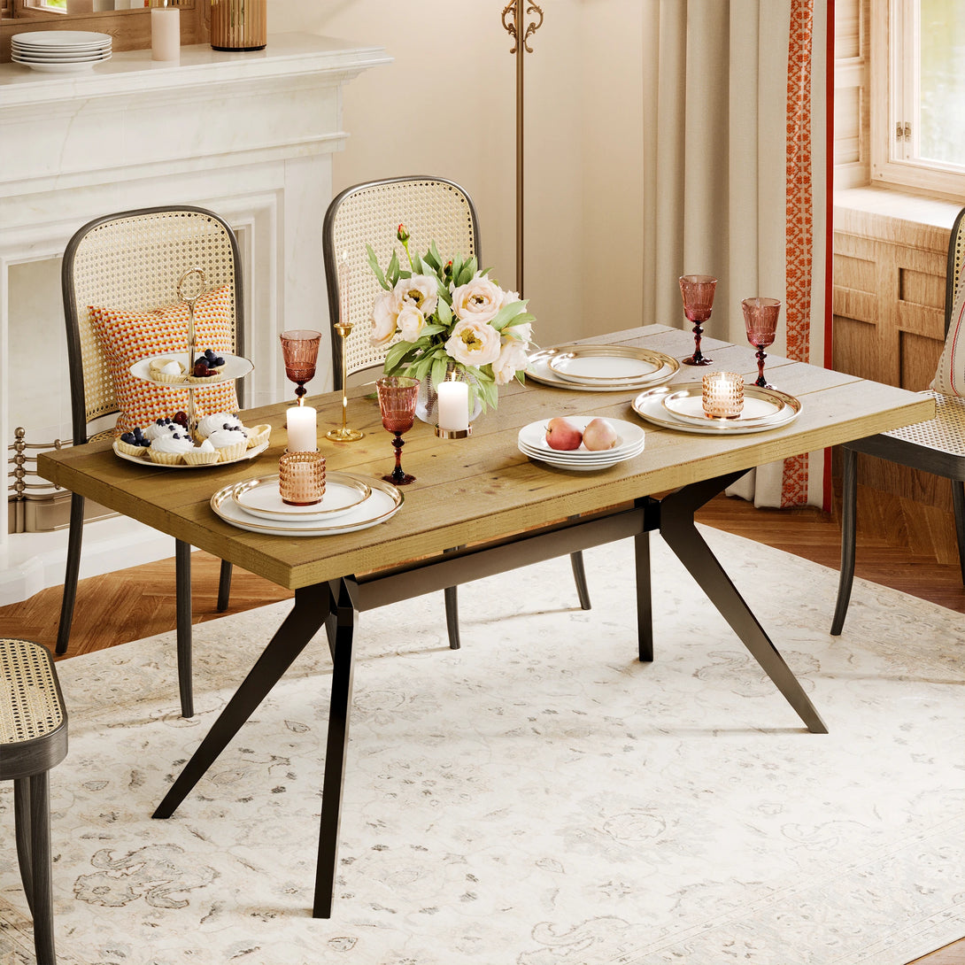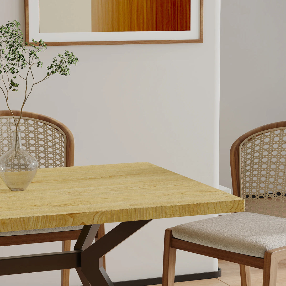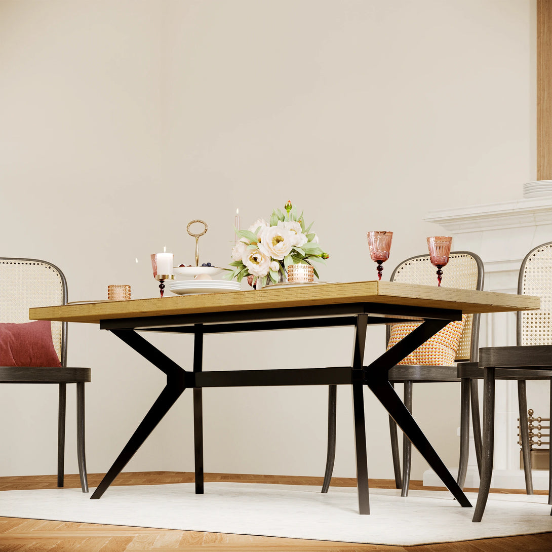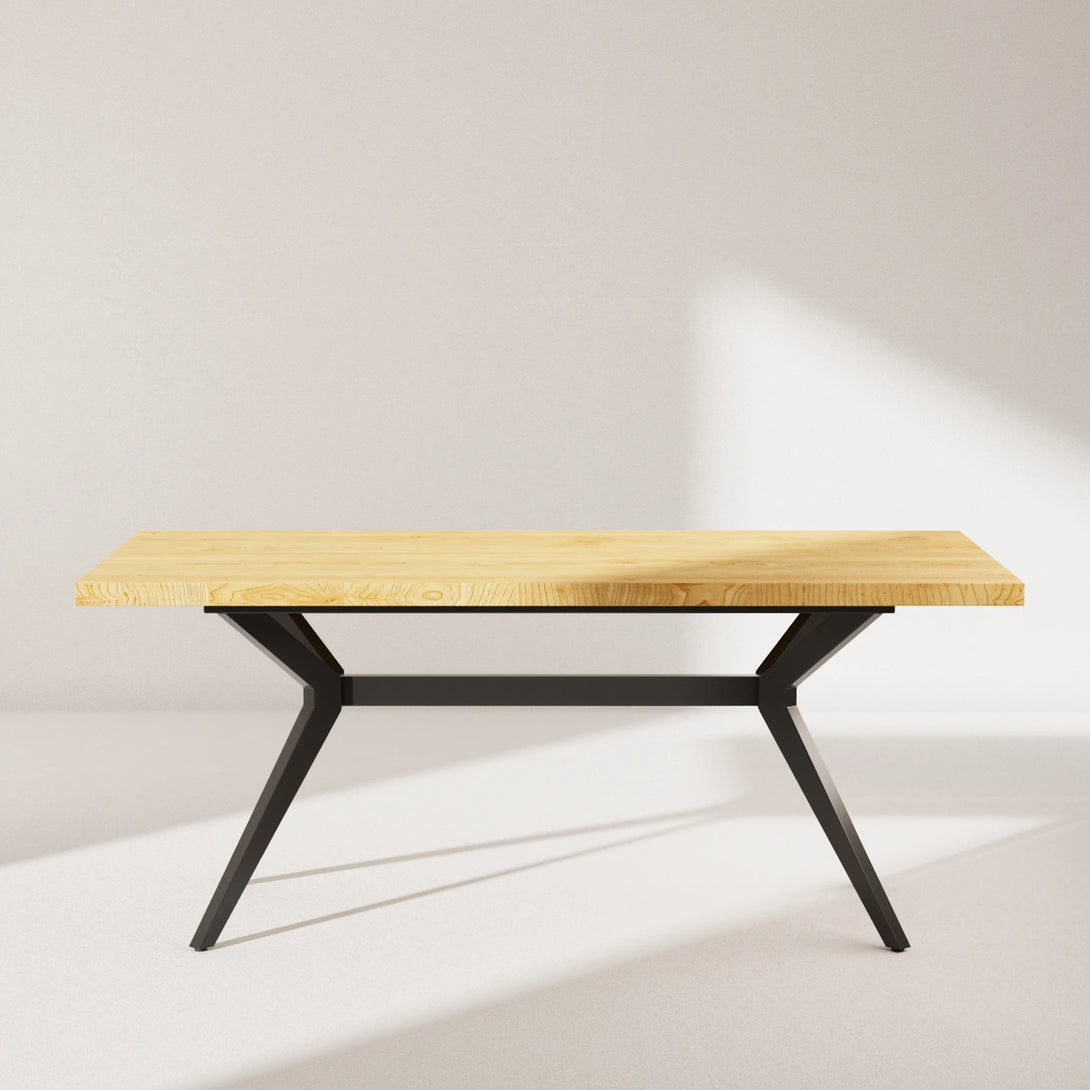 Crafted with a smooth light wood tabletop that showcases natural grain, paired with dark gray X-shaped metal legs for stability and style. Perfect for dining or living rooms, it blends modern elegance with organic warmth, enhancing your space with refined charm.