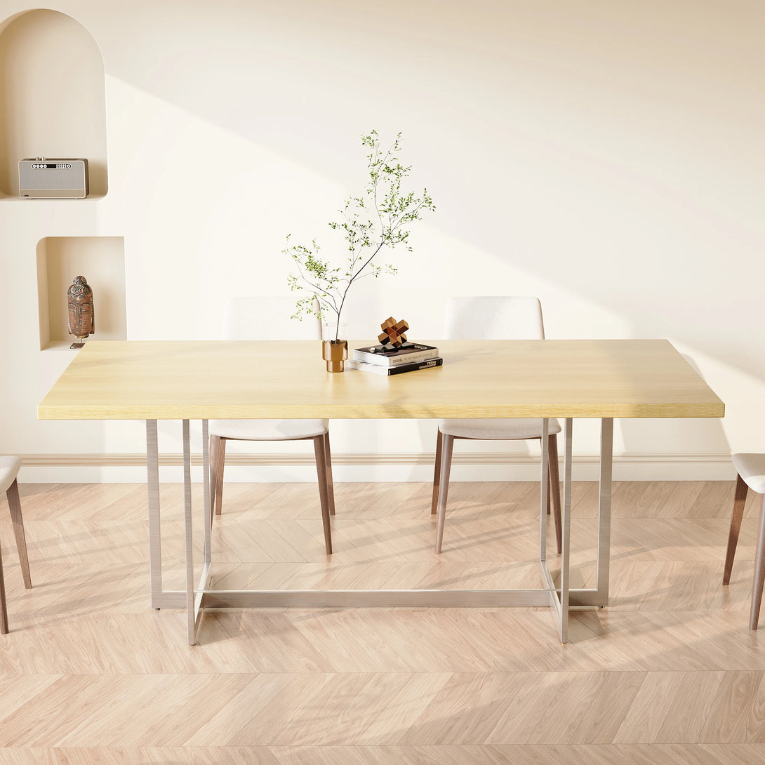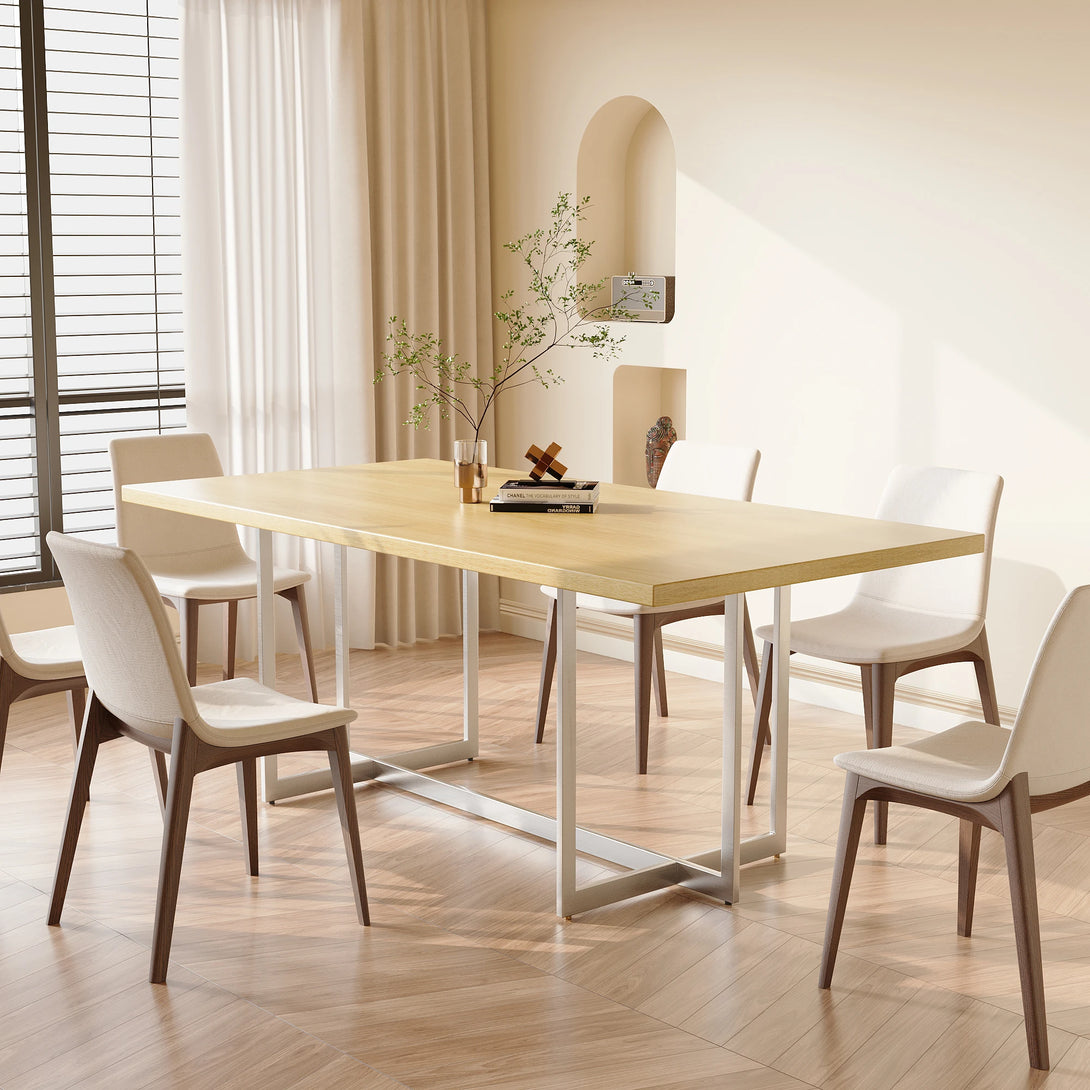 Crafted with an MDF desktop featuring natural ash veneer and edge banding, this table combines durability with refined style. The sturdy iron base is available in two elegant finishes—electroplated brushed gold or brushed silver—blending modern luxury with timeless design.