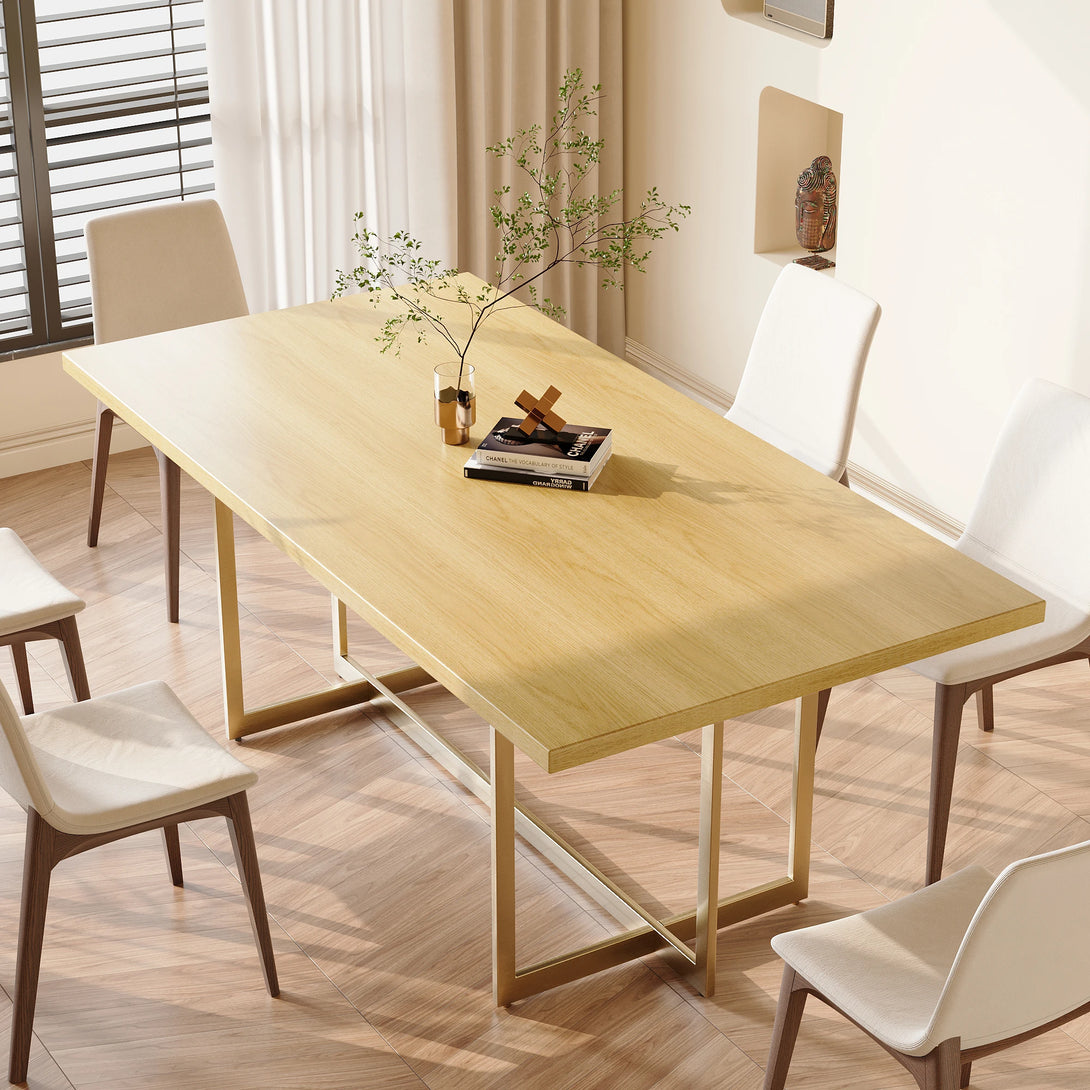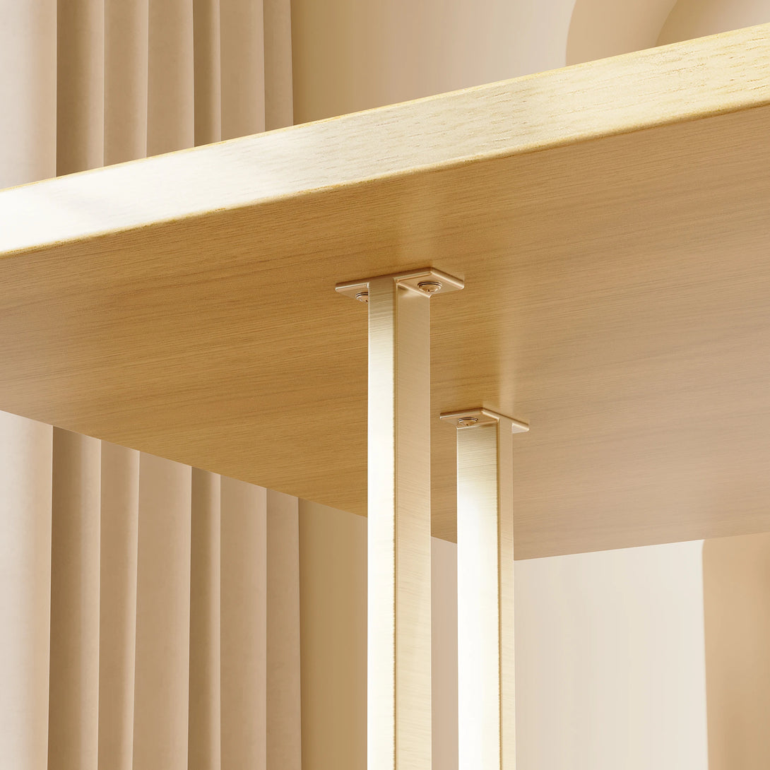 Crafted with an MDF desktop featuring natural ash veneer and edge banding, this table combines durability with refined style. The sturdy iron base is available in two elegant finishes—electroplated brushed gold or brushed silver—blending modern luxury with timeless design.