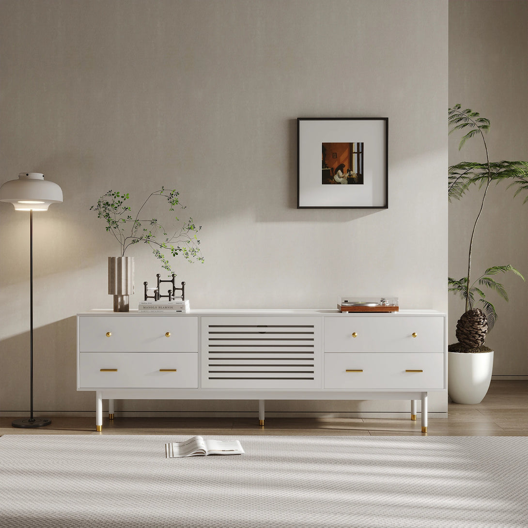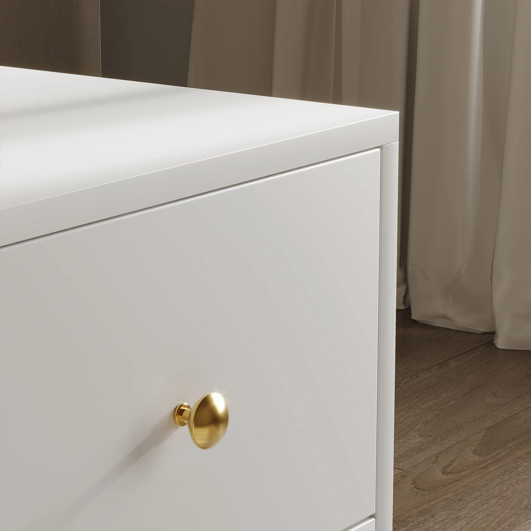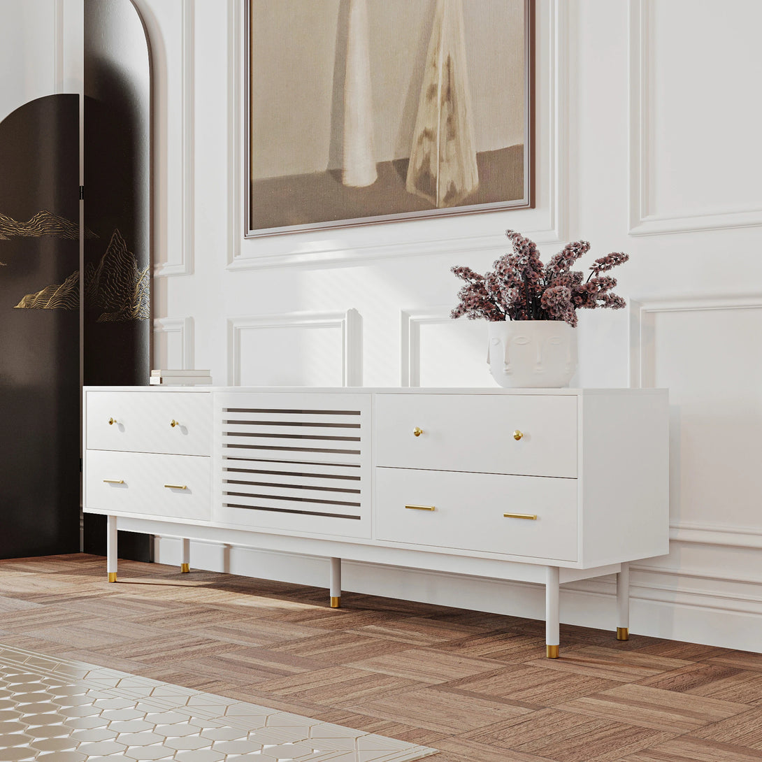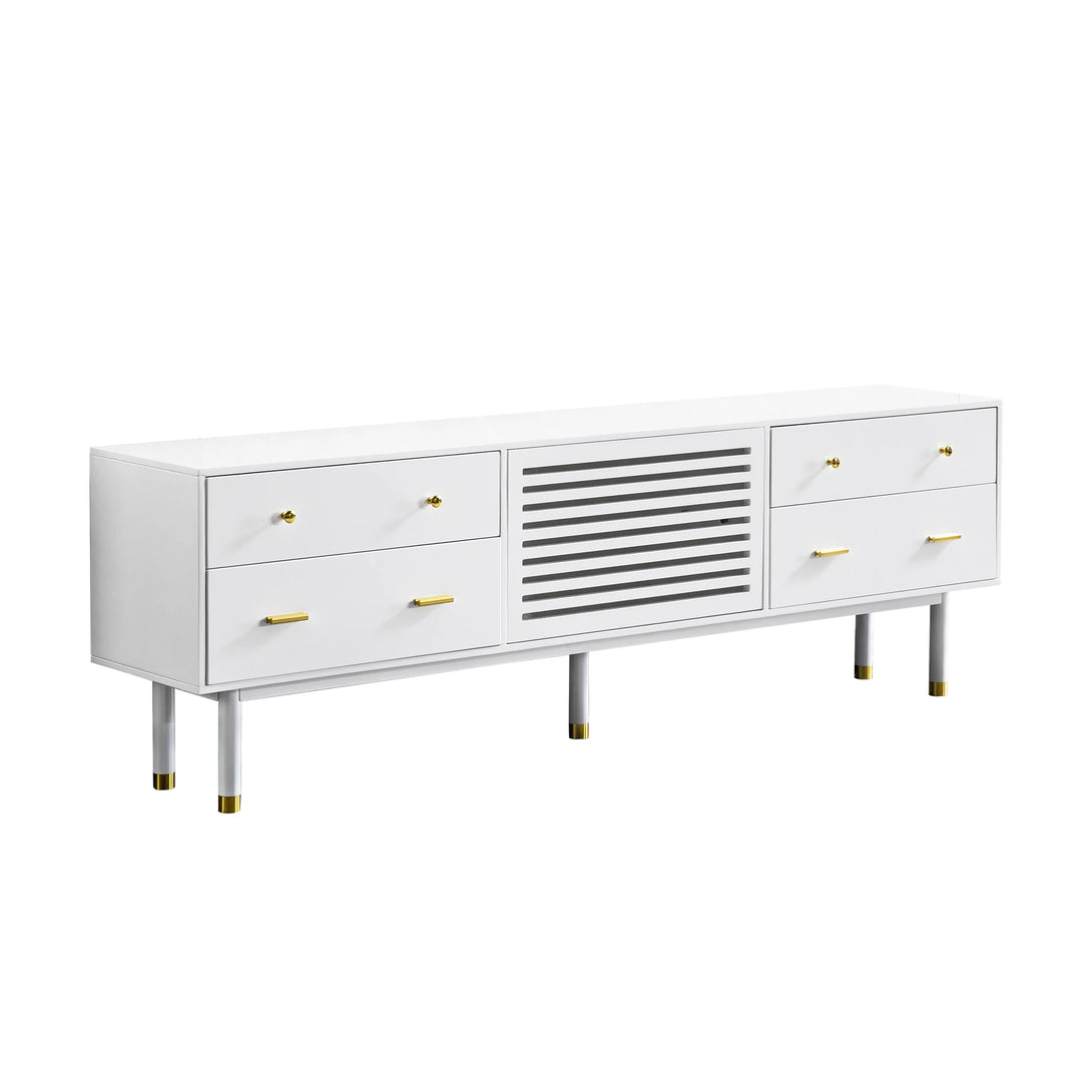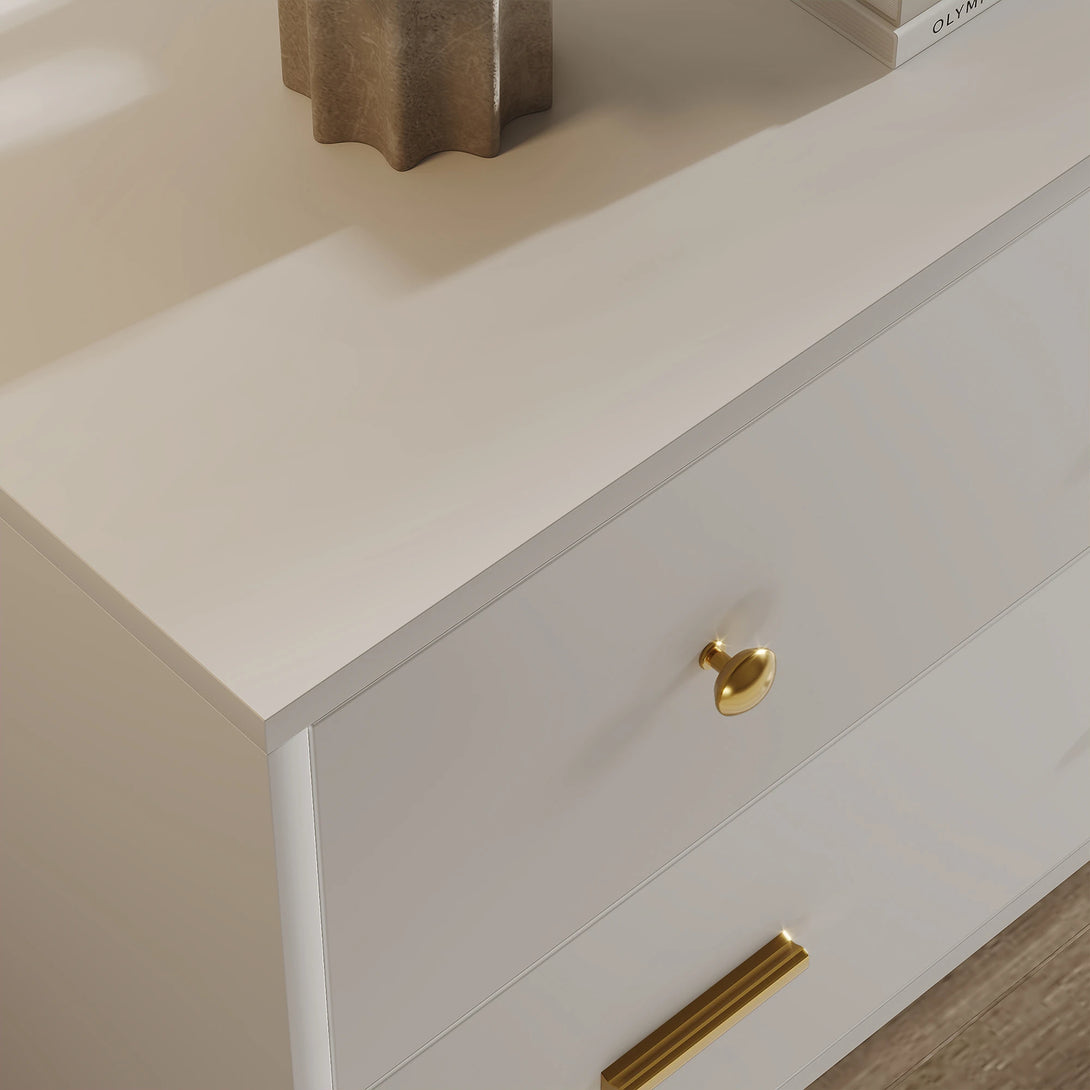 Features: This cabinet includes multiple drawers and cabinet doors, offering ample storage for daily essentials. Gold handles and legs add a luxurious, modern touch, while the sturdy structure ensures durability and stability.