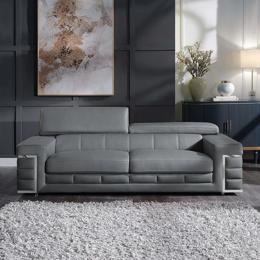 This modern sofa is crafted from high-quality faux leather with a sleek orange finish, bringing both comfort and style to your space. The metal feet provide strong support and durability while adding a touch of modern elegance.