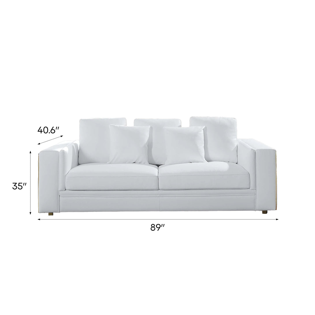 Sofa – Crafted with top leather, a solid wood frame, and high-density foam with pocket springs, this sofa combines durability with superior comfort. The stainless steel legs add modern elegance and stability, making it a perfect fit for living rooms