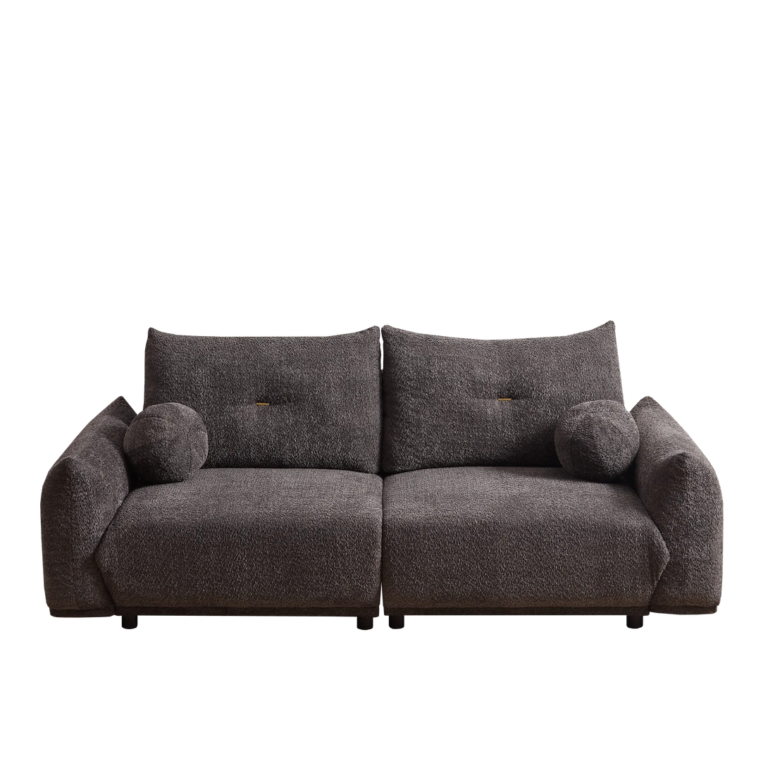 Material: High-gram lambswool fabric / High-density foam / Individual spring packs / Solid hardwood frame / Rubber feet / Metal accents
