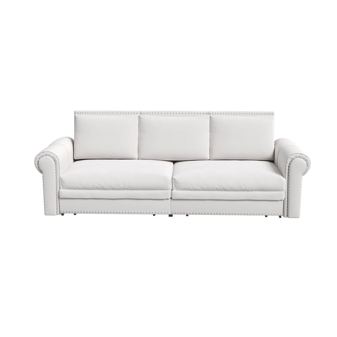 Upholstered in soft, smooth velvet with elegant hand-inlaid rivet trim and classic rolled armrests, blending vintage charm with modern chic for a sophisticated look.