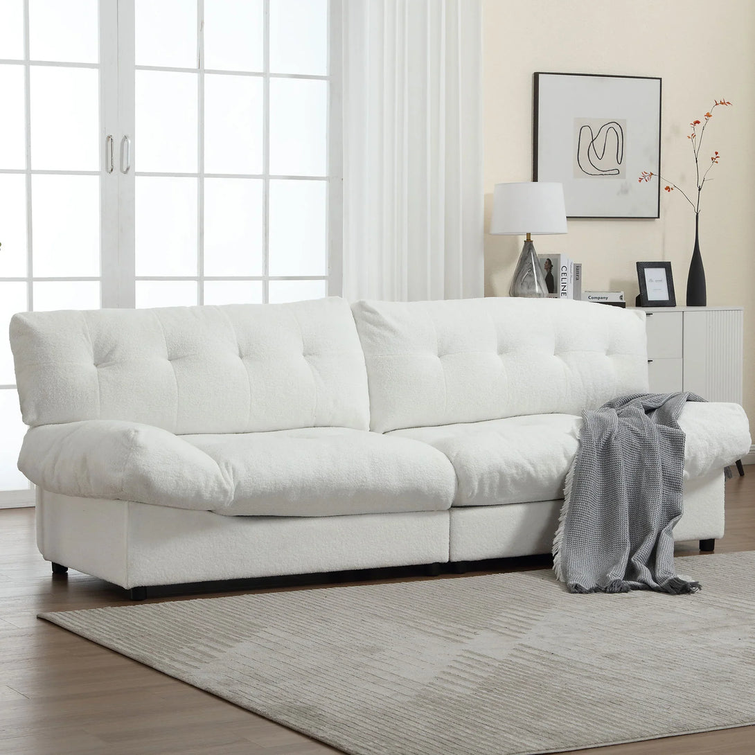 Covered in soft teddy fabric with elegant button tufting, this modern sofa blends warmth and style to suit any home décor. Available in three colors, it’s easy to match with your apartment, bedroom, or living room color scheme.
