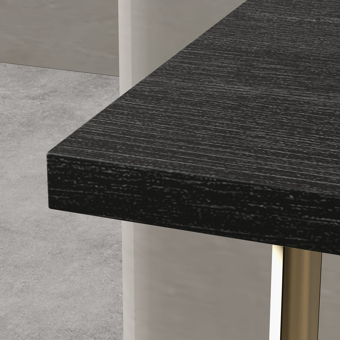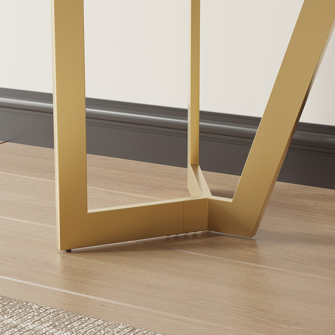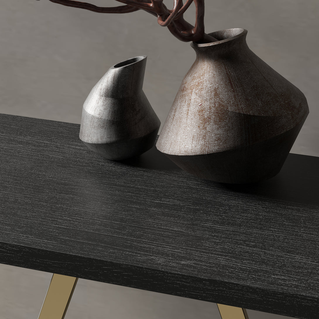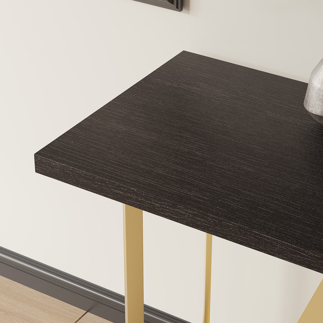Add sophistication to your space with this black rectangular top console table. Designed with a bold black top and a sleek brushed gold base, it blends modern elegance with timeless style. Crafted from MDF, plywood, and metal, it is durable and versatile, making it ideal for entryways, living rooms, or hallways.