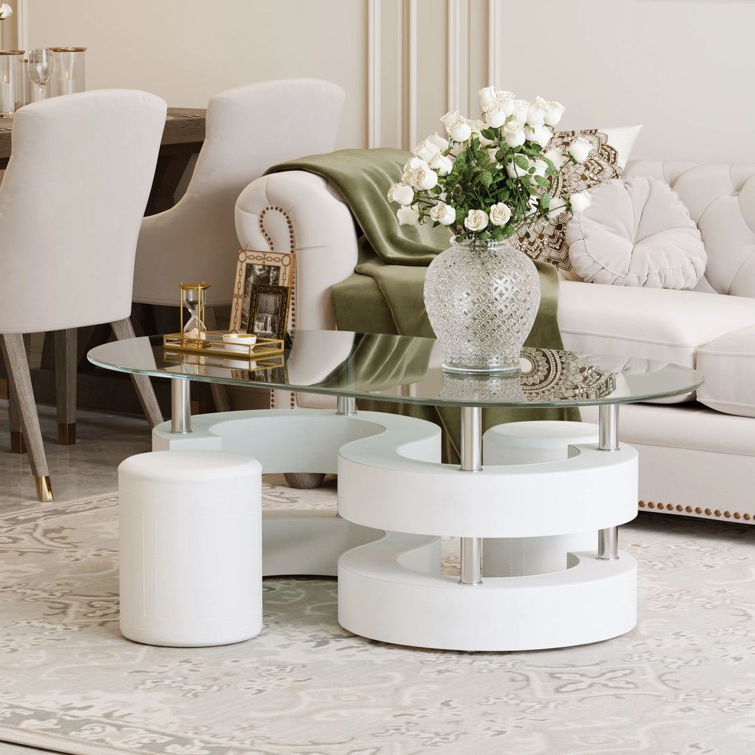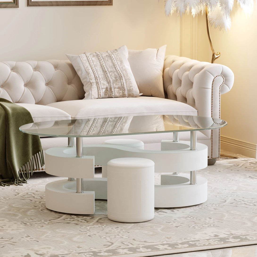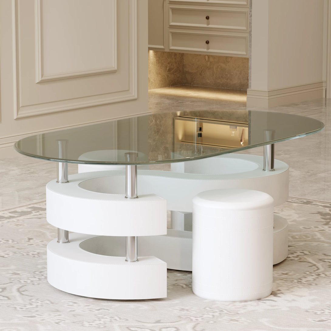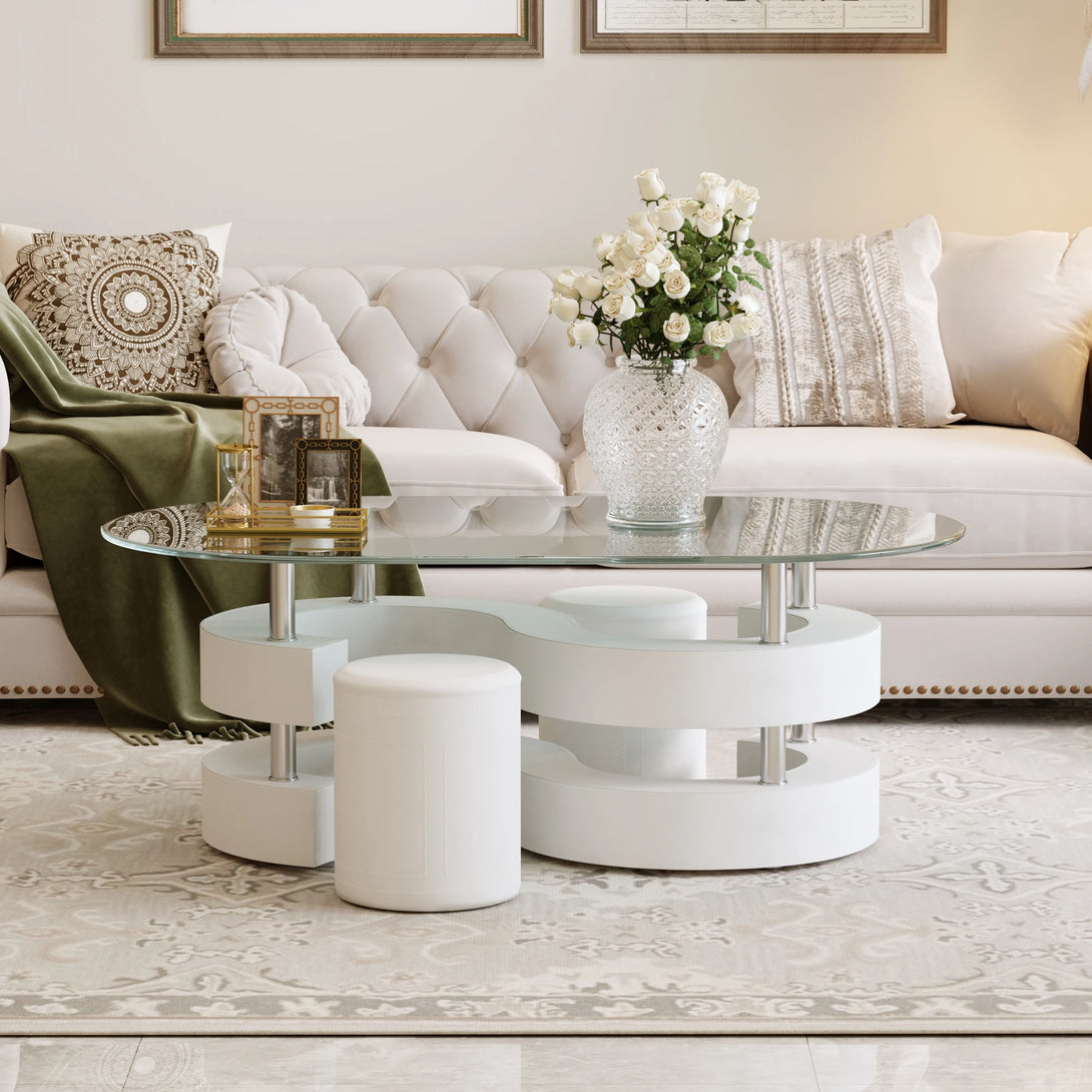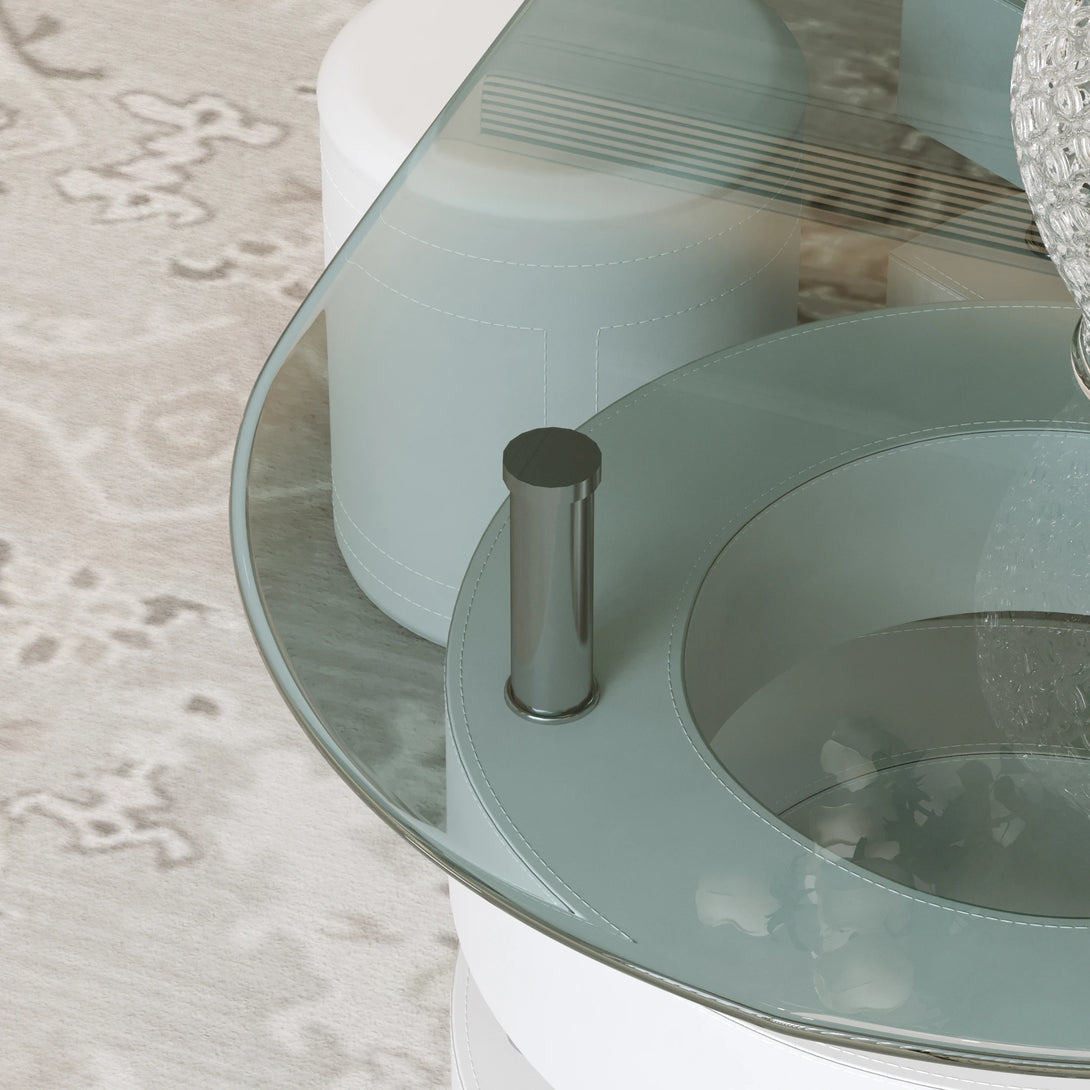 The tabletop is crafted from clear glass, offering a sleek, modern look with easy maintenance. The black base features a unique multi-layered circular structure, ensuring stability while adding artistic flair. Perfect for living rooms or lounges, this table enhances your space with modern elegance.