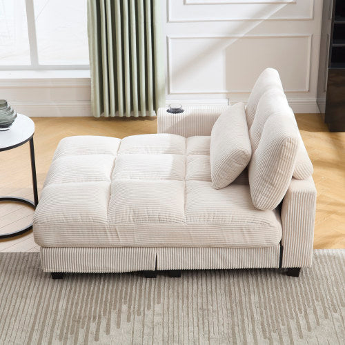 Ideal Space: Perfect for small living rooms, bedrooms, or studios, offering flexible placement with a switchable armrest. Features like a USB port and cup holder enhance convenience.