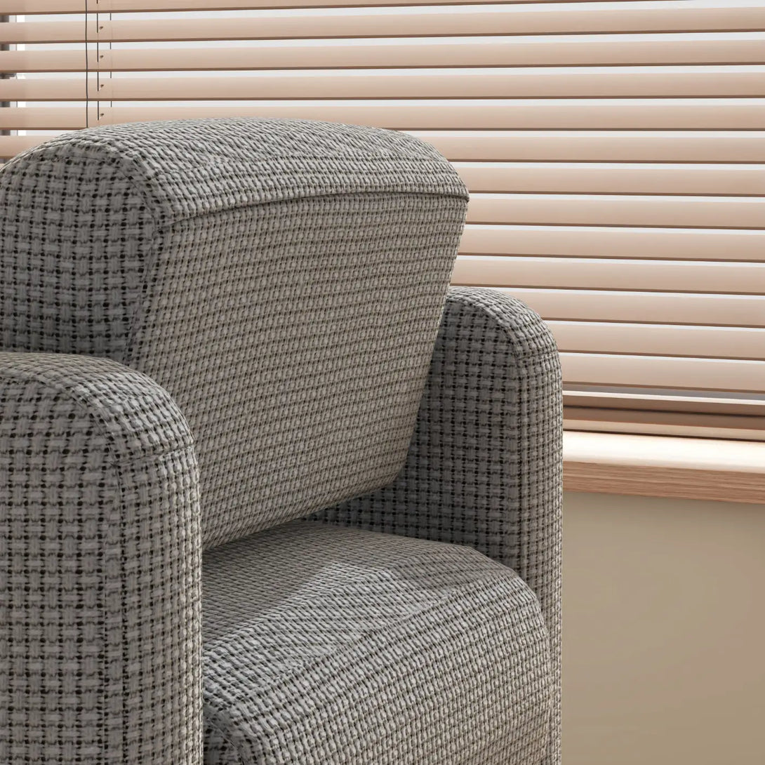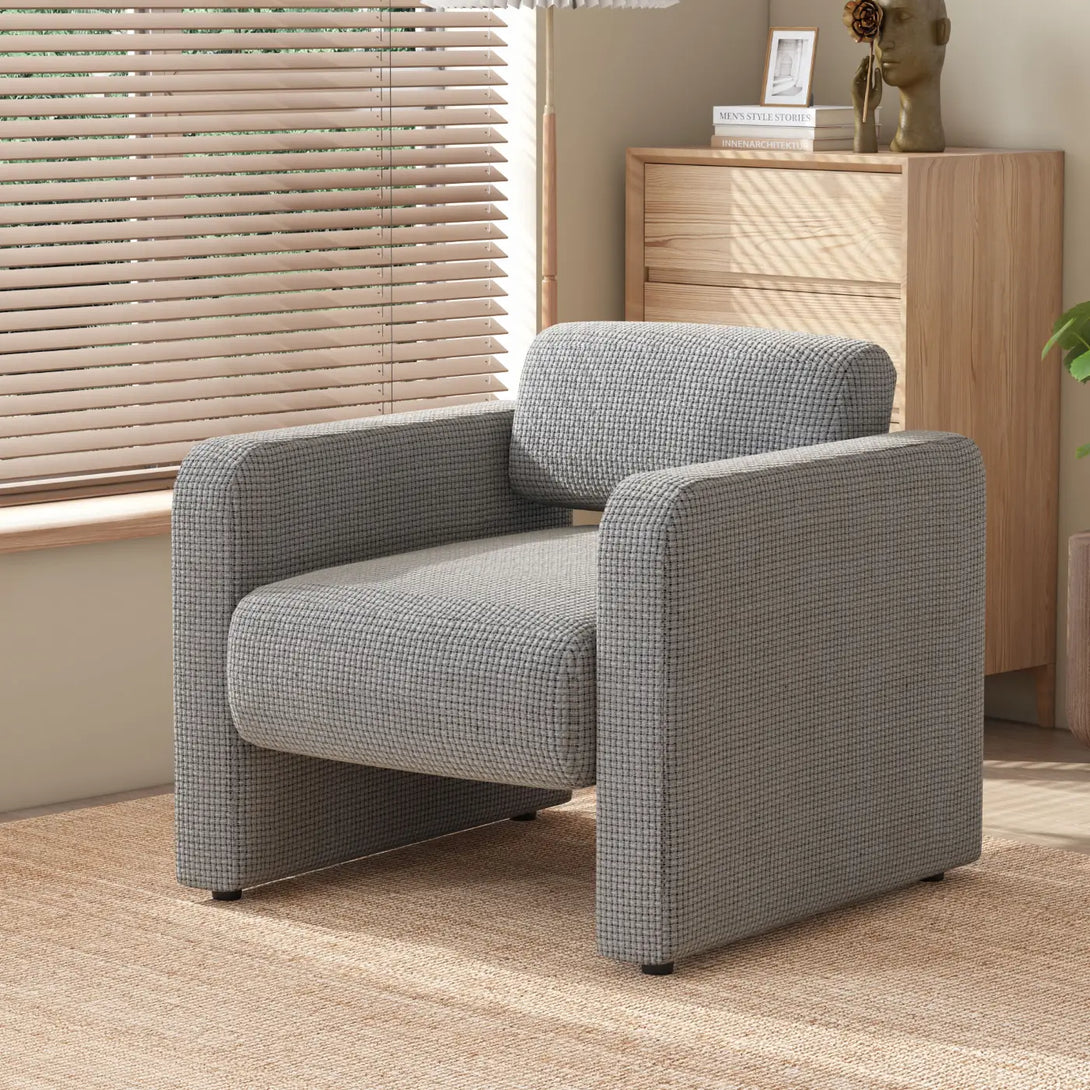 Add refined style to your home with the RC03 Fabric Accent Chair. Upholstered in soft fabric with plush foam cushioning, it combines comfort and durability. Available in three versatile colors, this chair features a sturdy plywood and hardwood frame with modern plastic legs. Easy, screw-free assembly makes it a practical yet stylish choice for any living space.