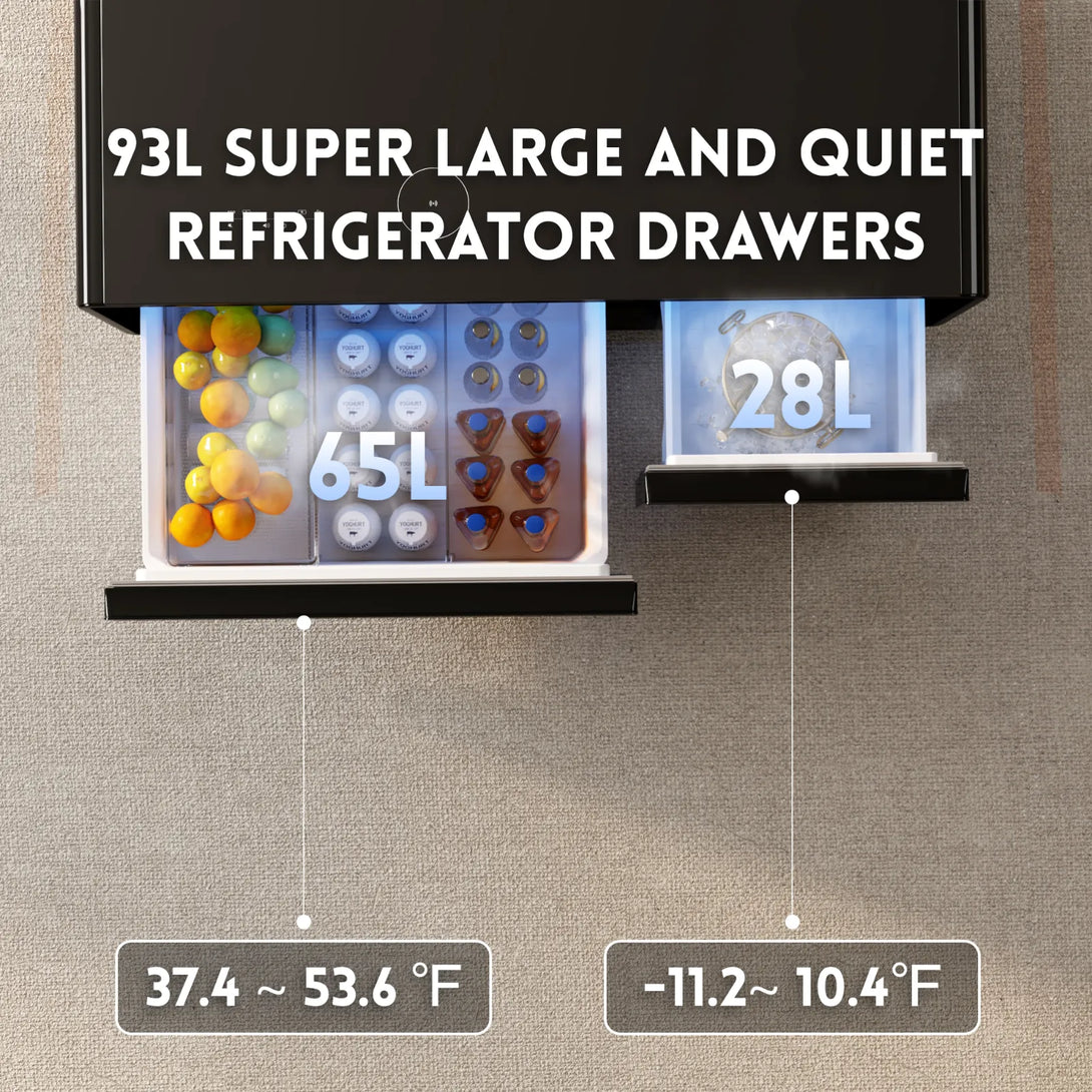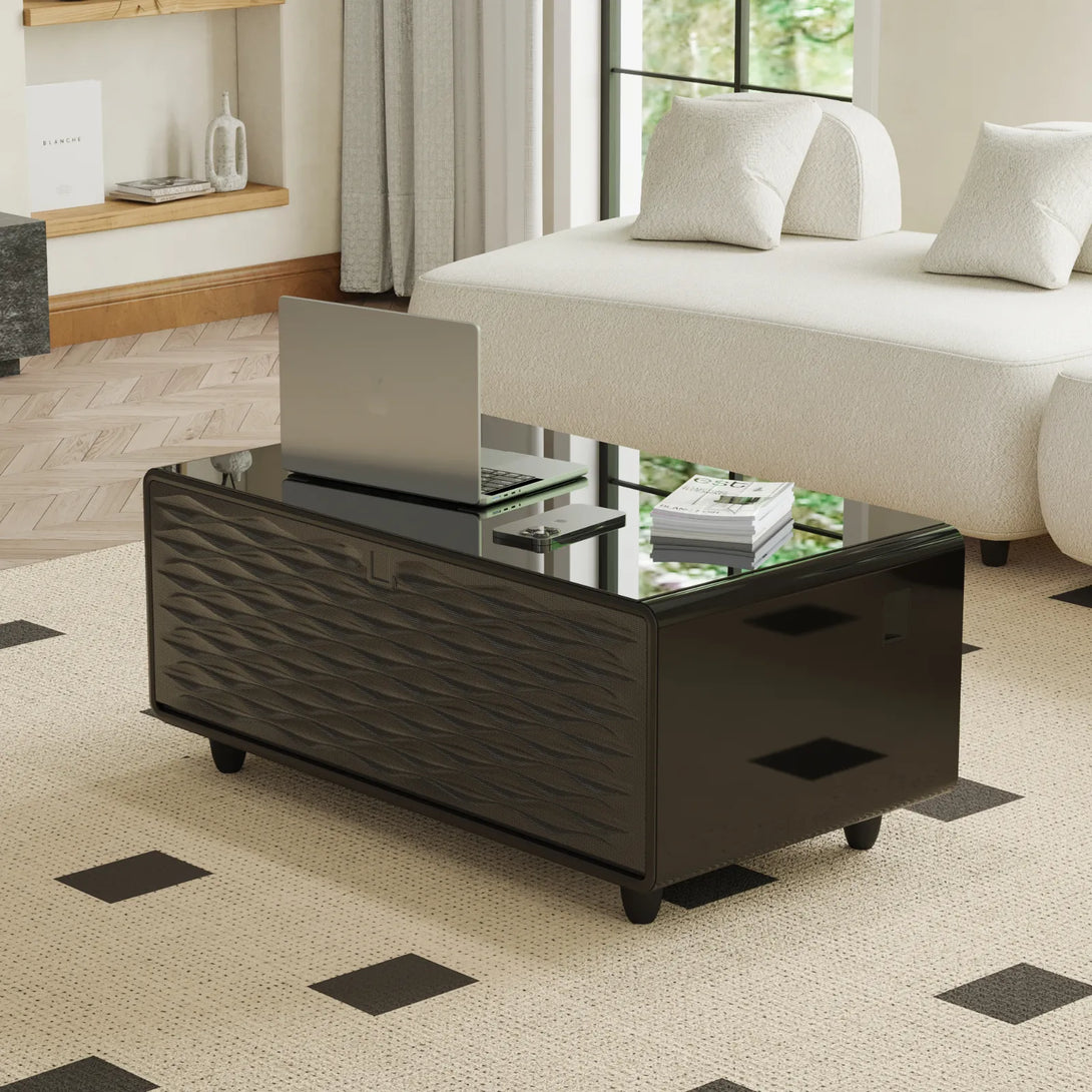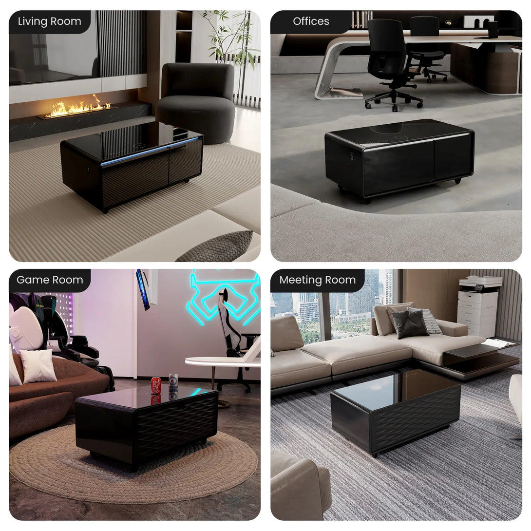 Upgrade your living space with this multifunctional coffee table featuring dual fridge drawers for cooling and freezing. Select models offer wireless charging, power outlets, Bluetooth speaker, and atmospheric lamp for enhanced convenience. With options for touchscreen or mechanical knob controls, plus storage and mobility features, this table perfectly blends technology with style.