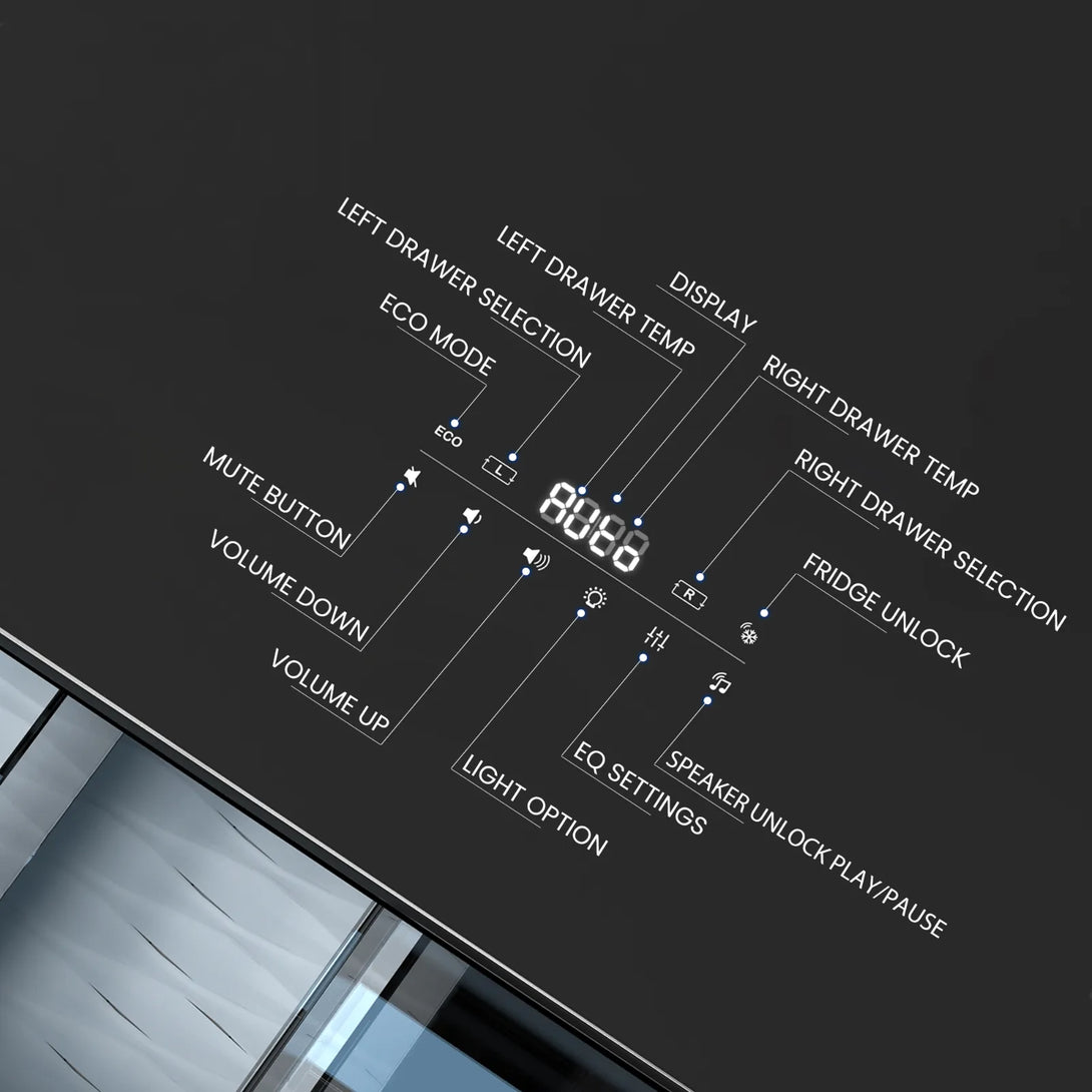 Features: Cooling/freezing drawers, wireless charging, power outlets, speaker & lamp (select models), touchscreen/mechanical knobs