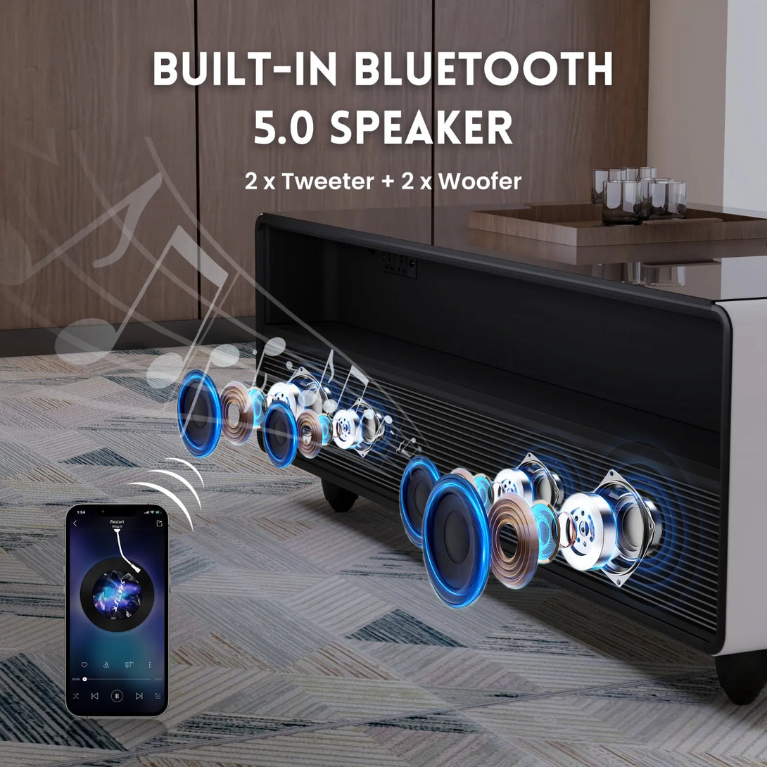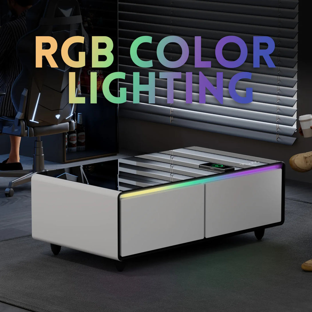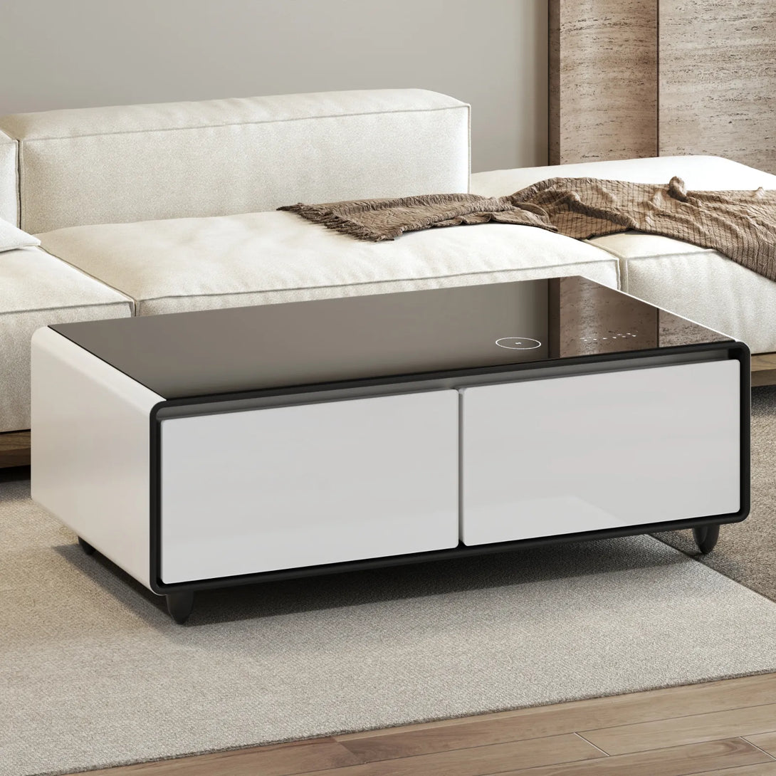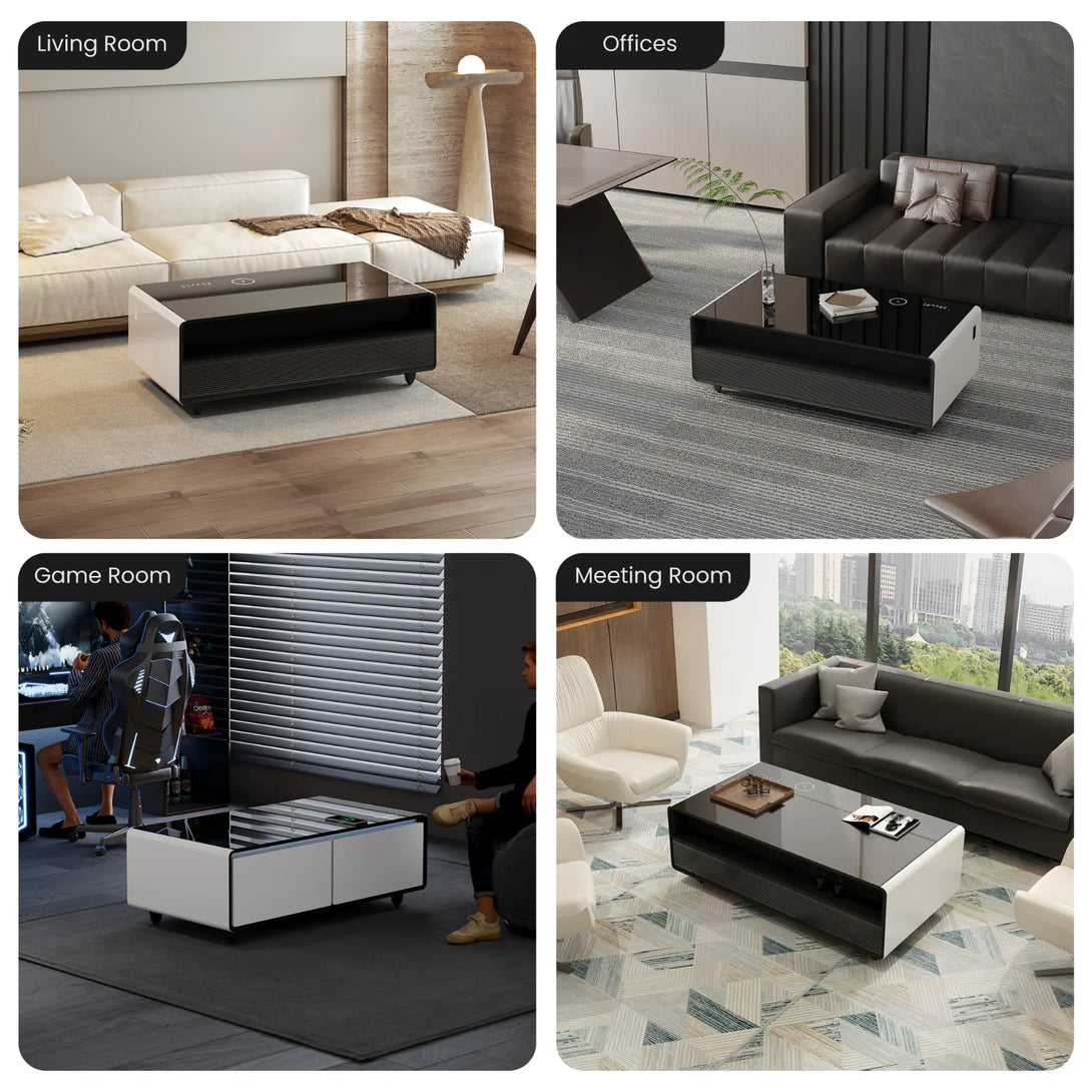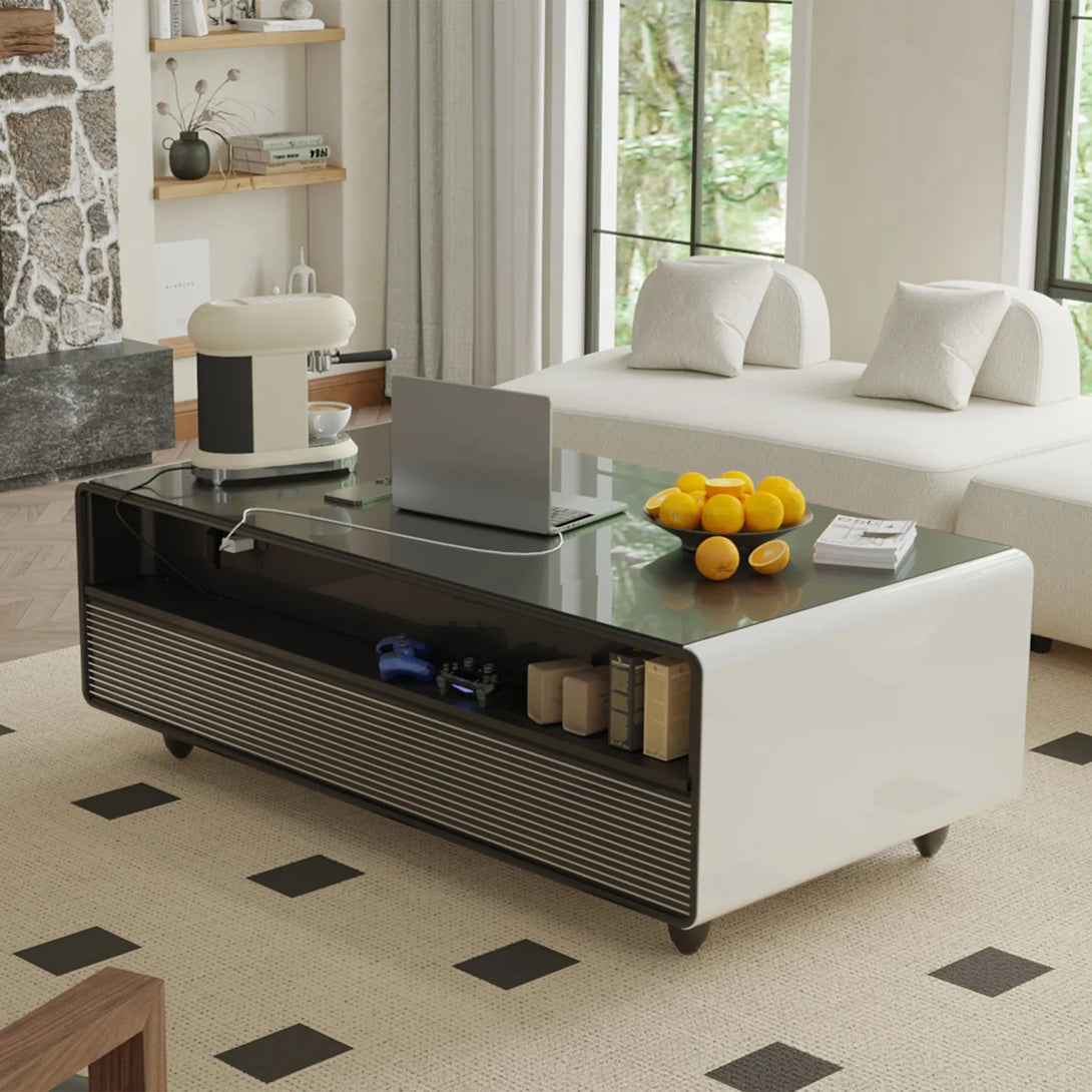 Upgrade your living space with this multifunctional coffee table featuring dual fridge drawers for cooling and freezing. Select models offer wireless charging, power outlets, Bluetooth speaker, and atmospheric lamp for enhanced convenience. With options for touchscreen or mechanical knob controls, plus storage and mobility features, this table perfectly blends technology with style.