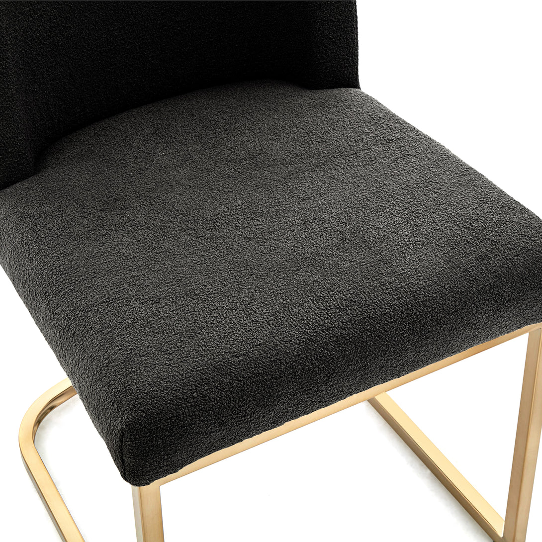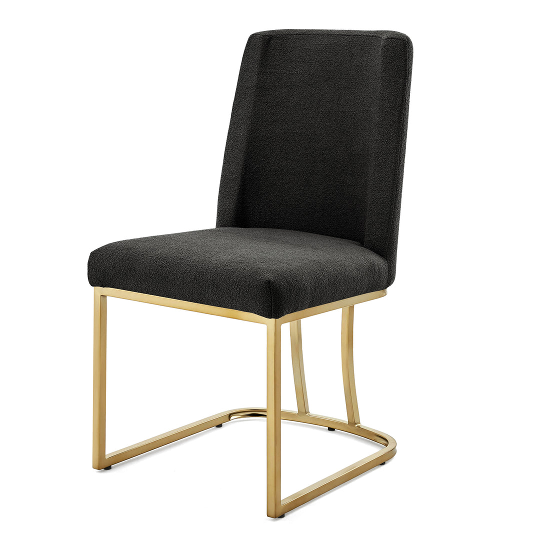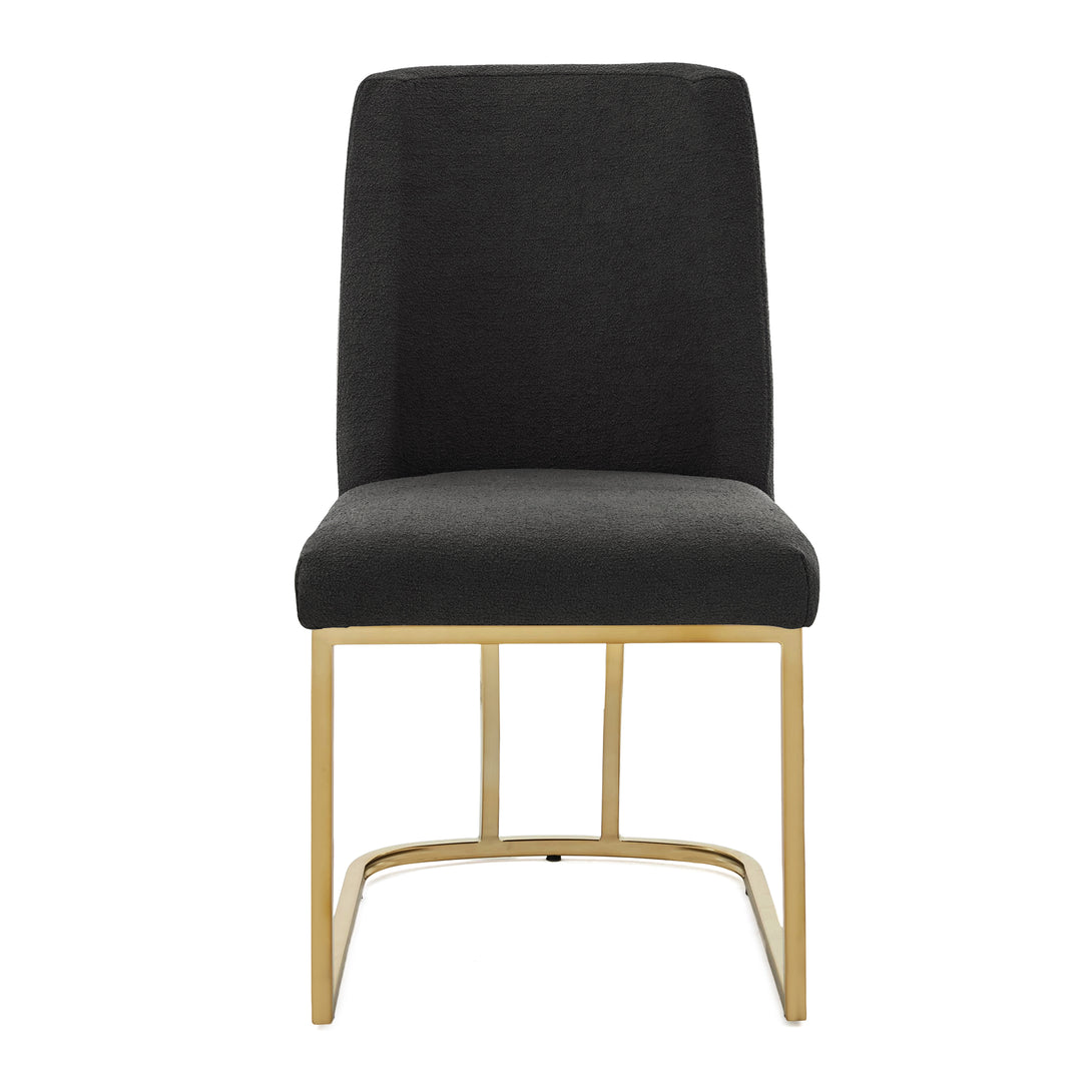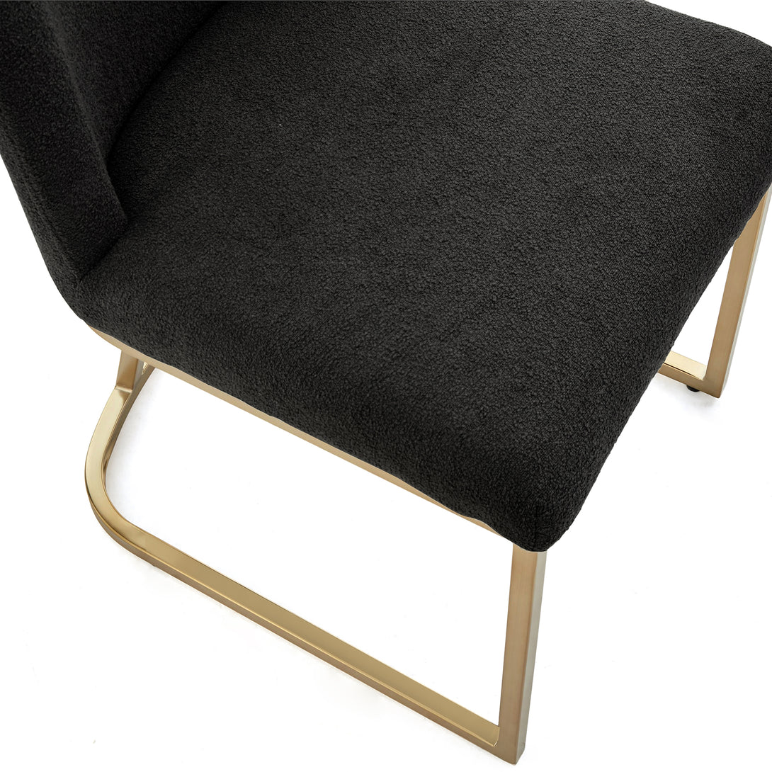 This modern dining chair combines sleek design with comfort. Featuring a gray fabric seat and backrest for a cozy feel, it includes soft round fabric armrest ends for added elegance. The sturdy metal frame ensures durability, making it perfect for dining rooms, studies, or bedrooms. Its minimalist style enhances any contemporary space.
