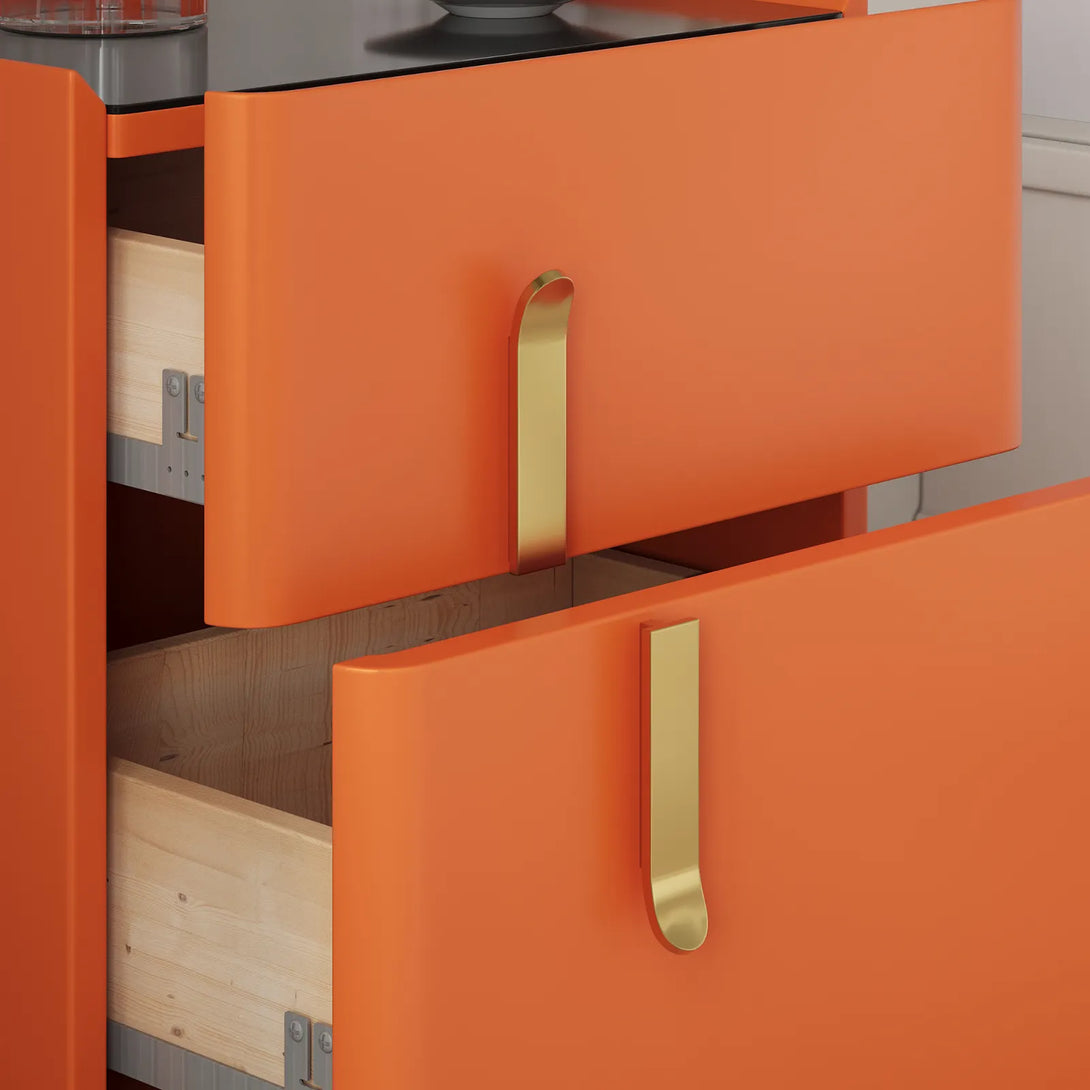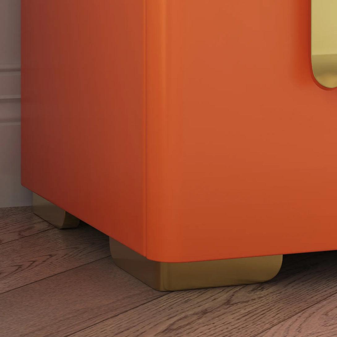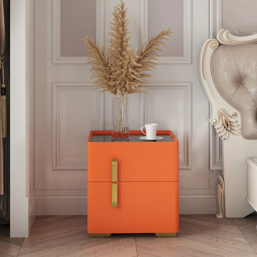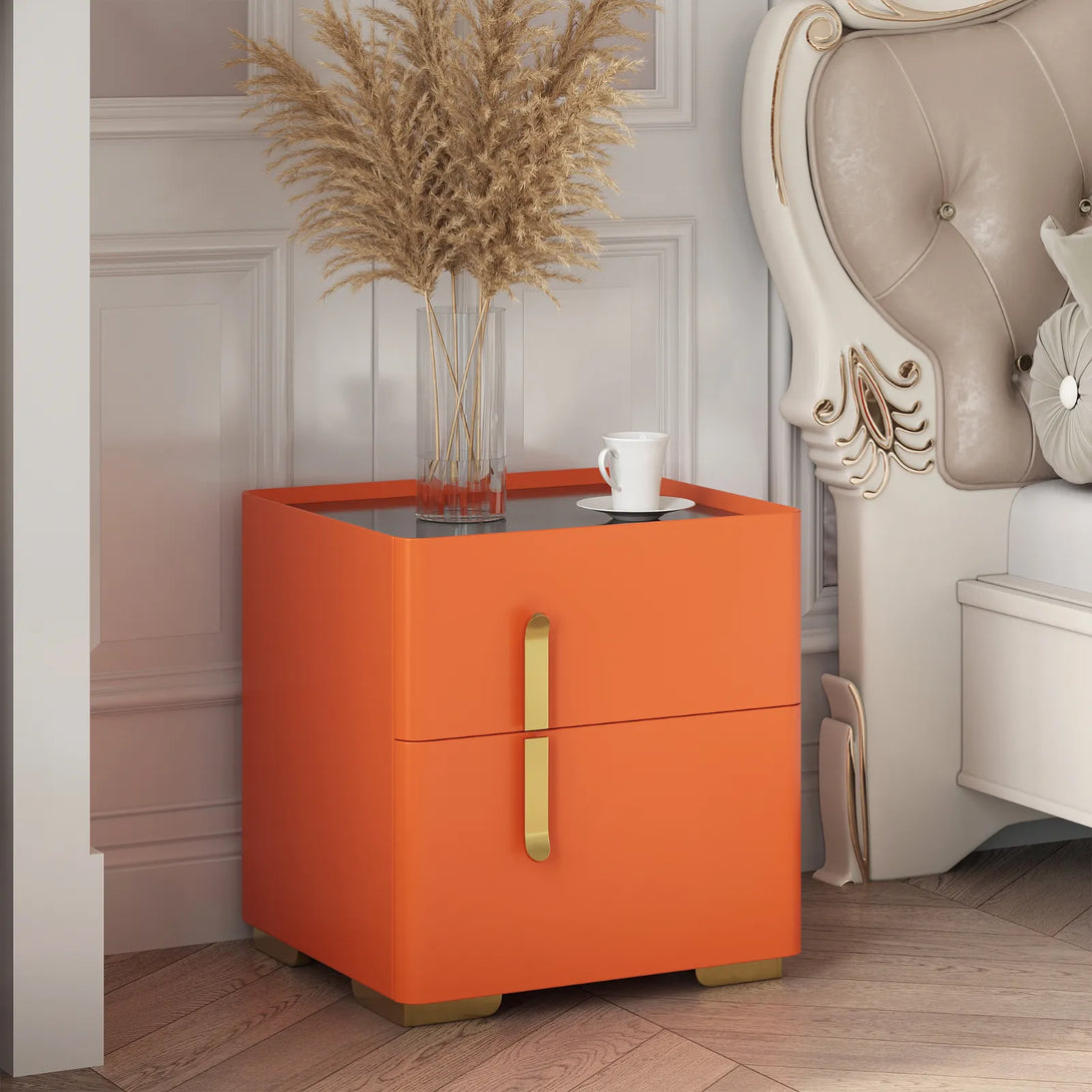 Stylish Ivory/Orange Lacquer Night Stand crafted from durable MDF. Its compact size, vibrant lacquer finish, and modern design provide both functionality and a pop of color, perfect for bedrooms or accent spaces. No assembly required.