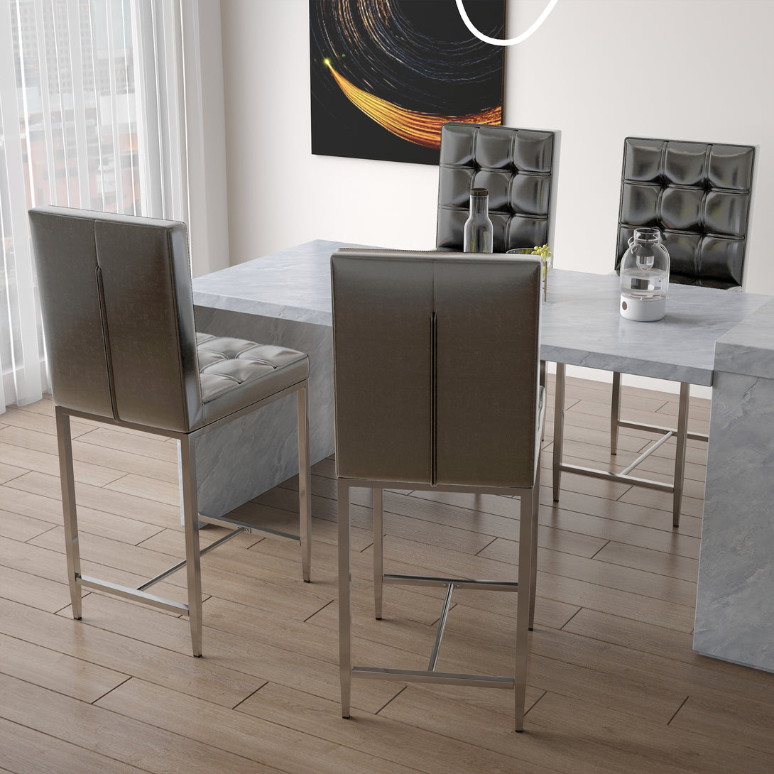 This stylish gray leather stool combines modern design with durability. Featuring a comfortable leather seat and sturdy metal legs with a metallic sheen, it’s perfect for bars, restaurants, kitchens, or offices. Easy to maintain—simply wipe with a soft cloth.