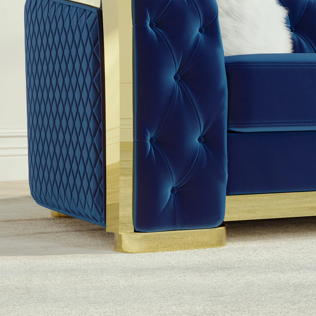 Features: Plush velvet upholstery, durable solid wood frame with foam cushioning, sleek stainless steel legs