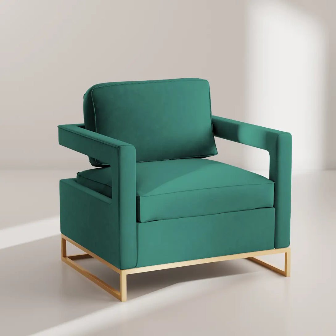 • Luxurious Velvet Barrel Chair with Gold Stainless Steel Base
