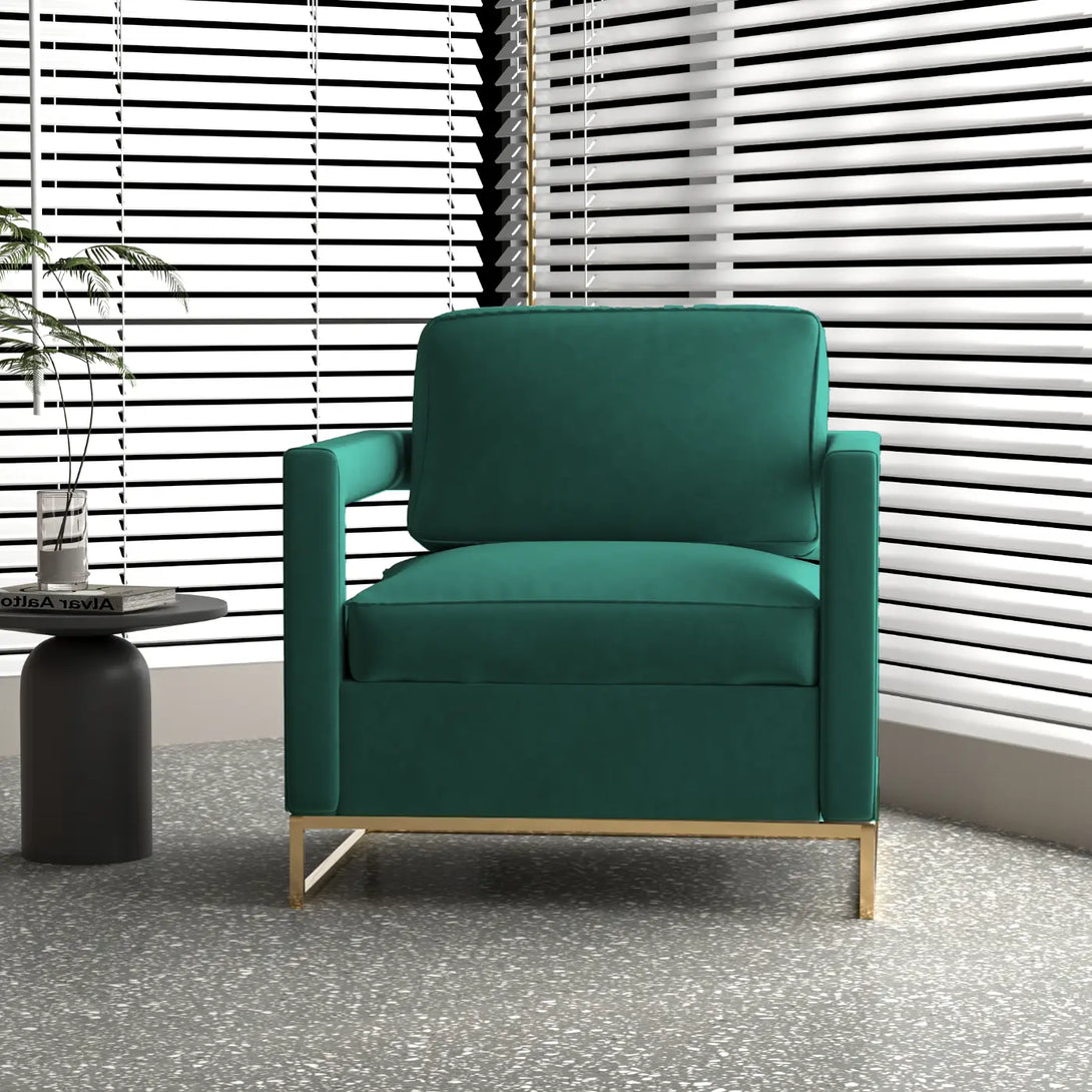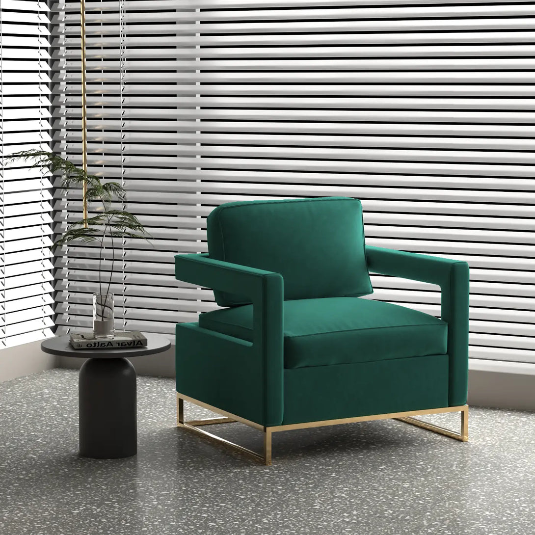 Bring elegance and comfort to any space with this velvet barrel chair. Featuring plush velvet in four chic colors and a sturdy stainless steel base with a gold finish, it blends luxury with durability. Perfect for living rooms, bedrooms, or offices.