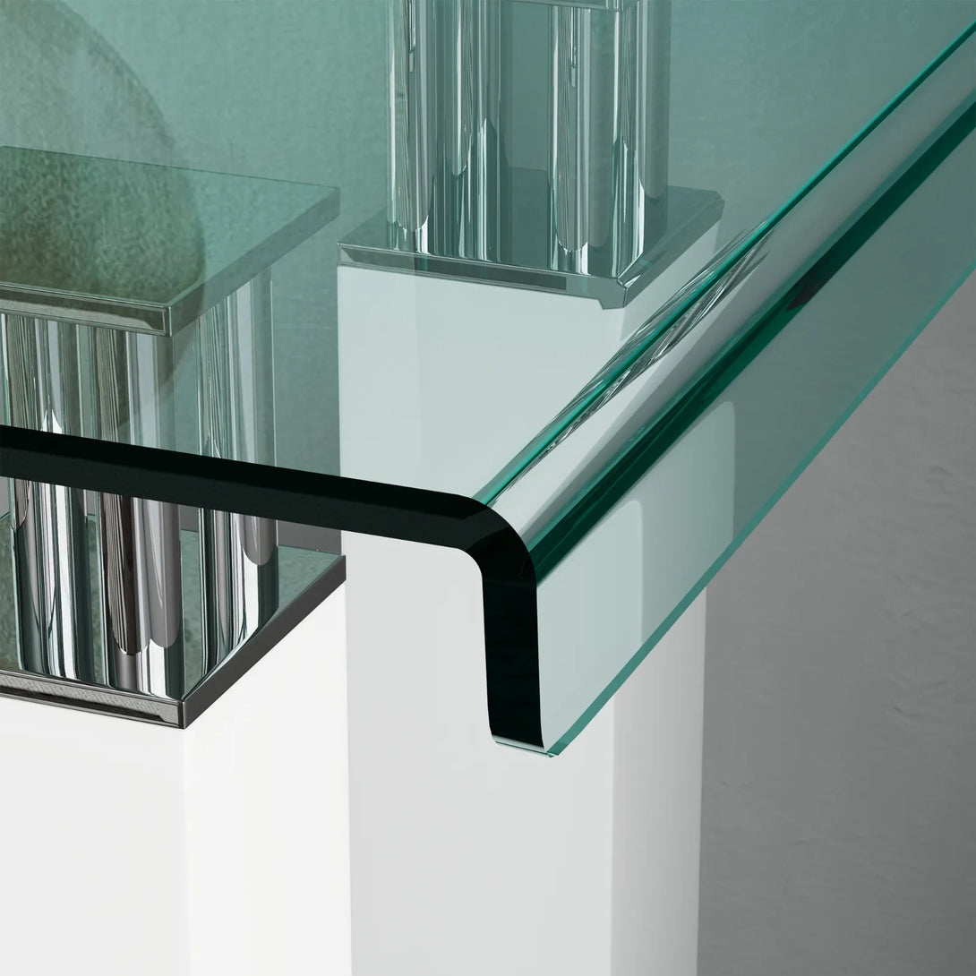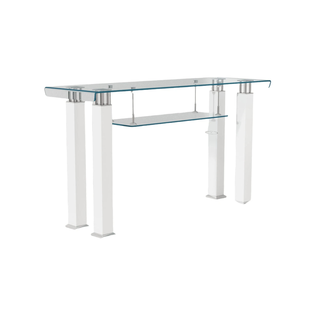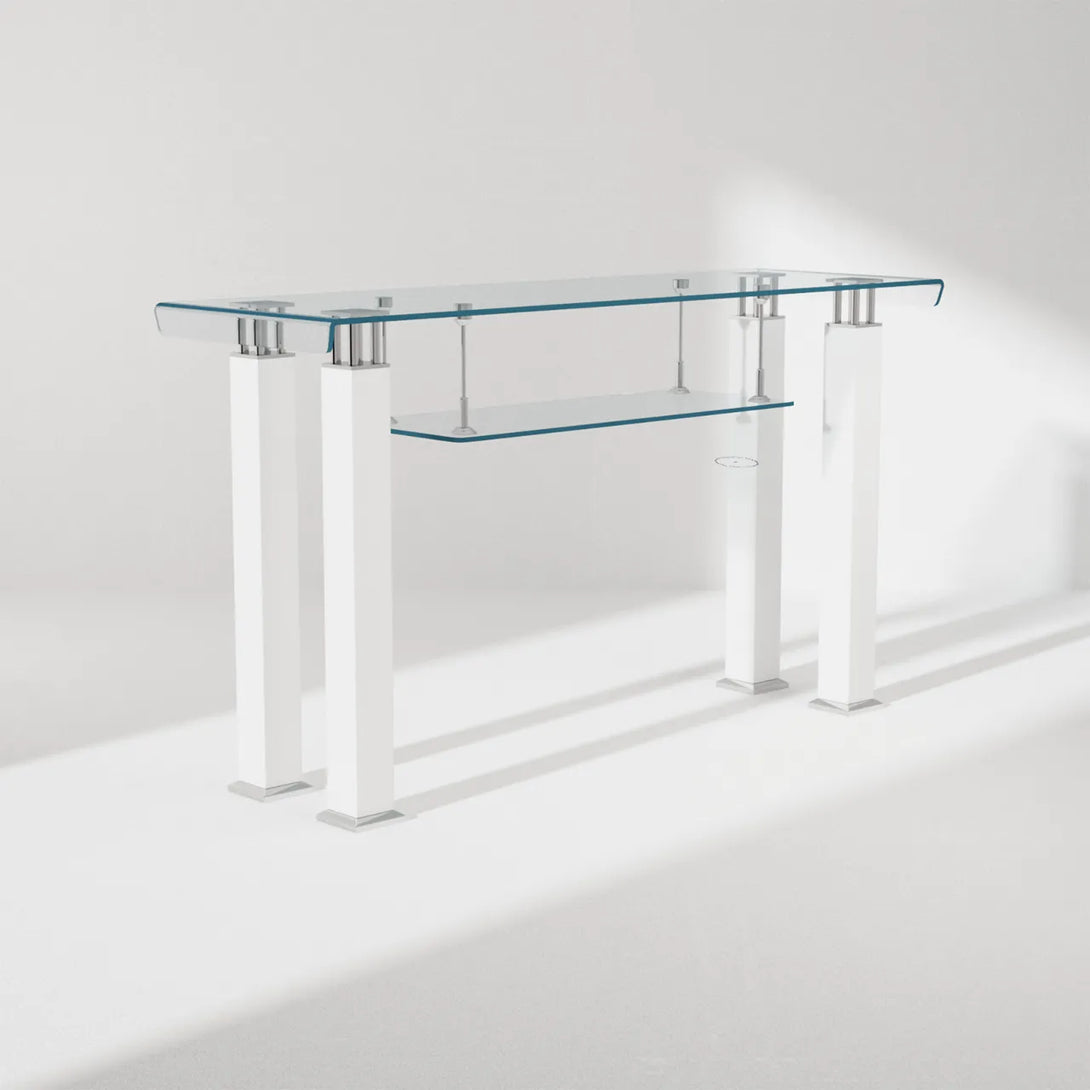 Elevate your home with this modern console table featuring a 10mm tempered glass top and an 8mm inner glass layer for enhanced durability. The sleek leatherette finish in black, white, or grey complements a variety of décors, while the sturdy metal frame ensures stability. Perfect for entryways or living rooms, its spacious yet slim profile offers both style and practicality.