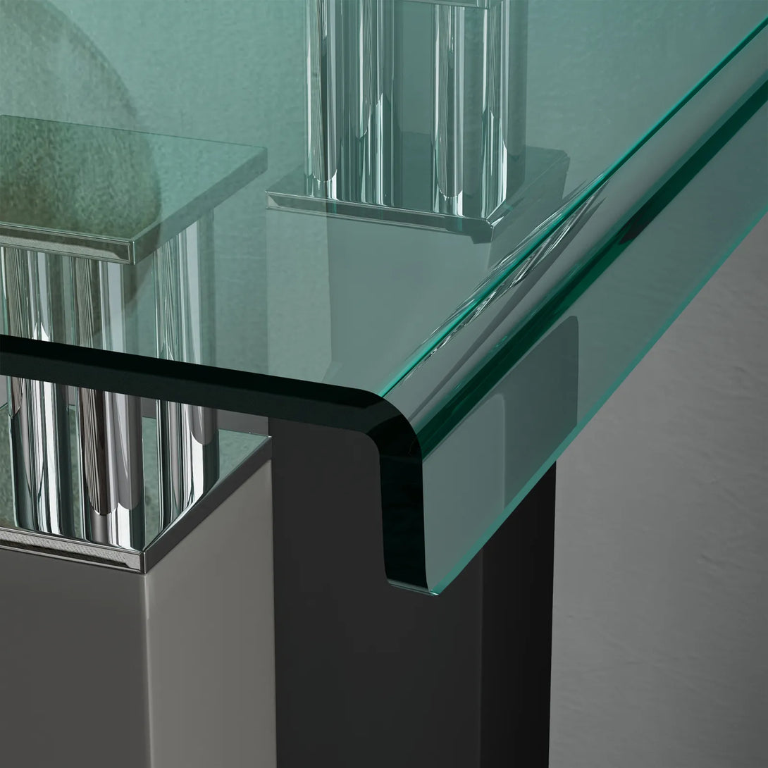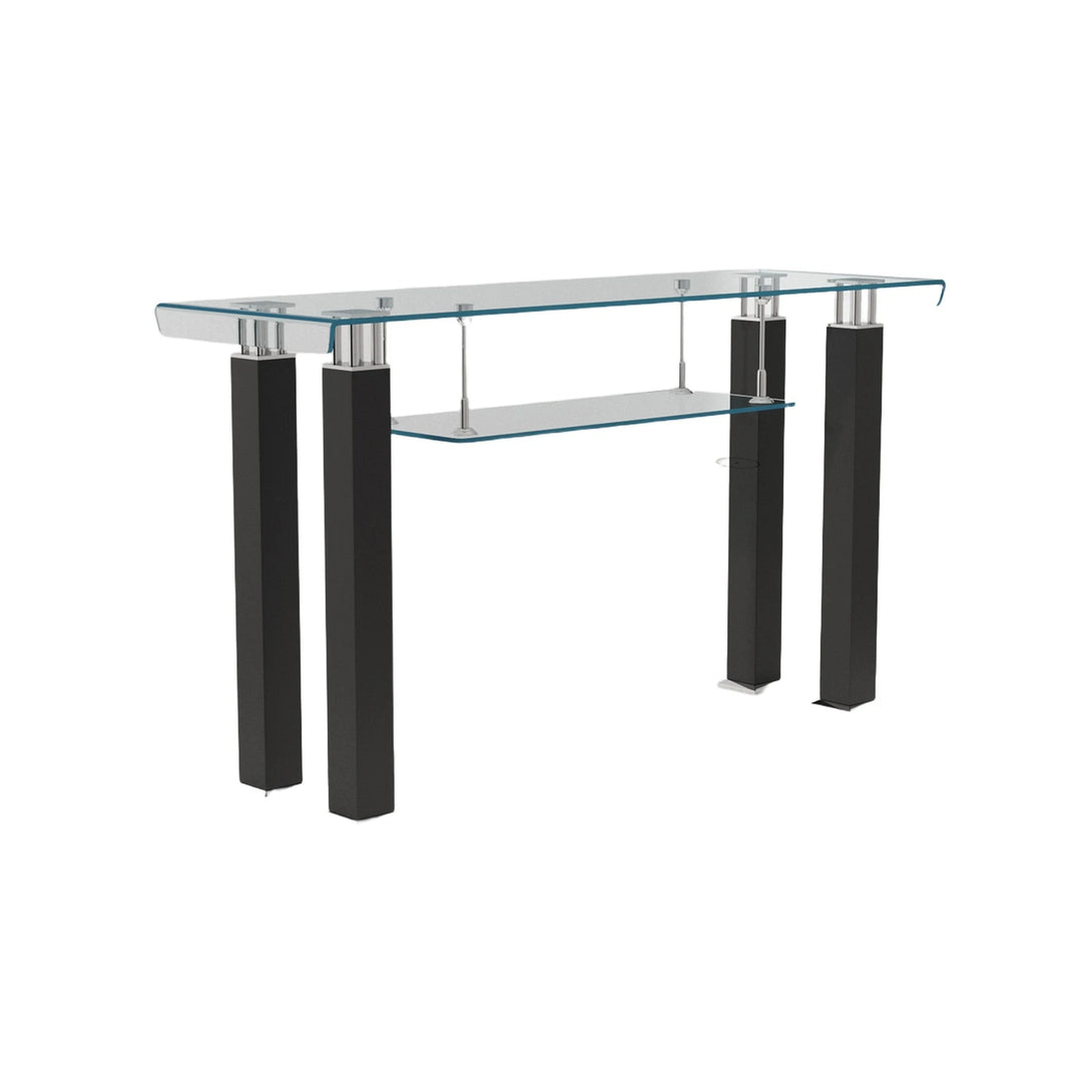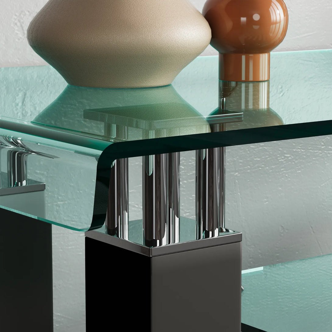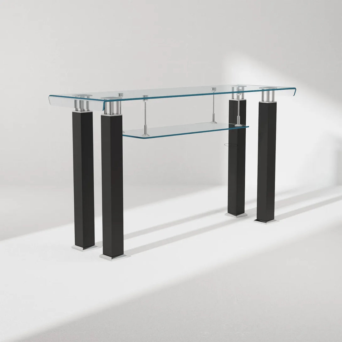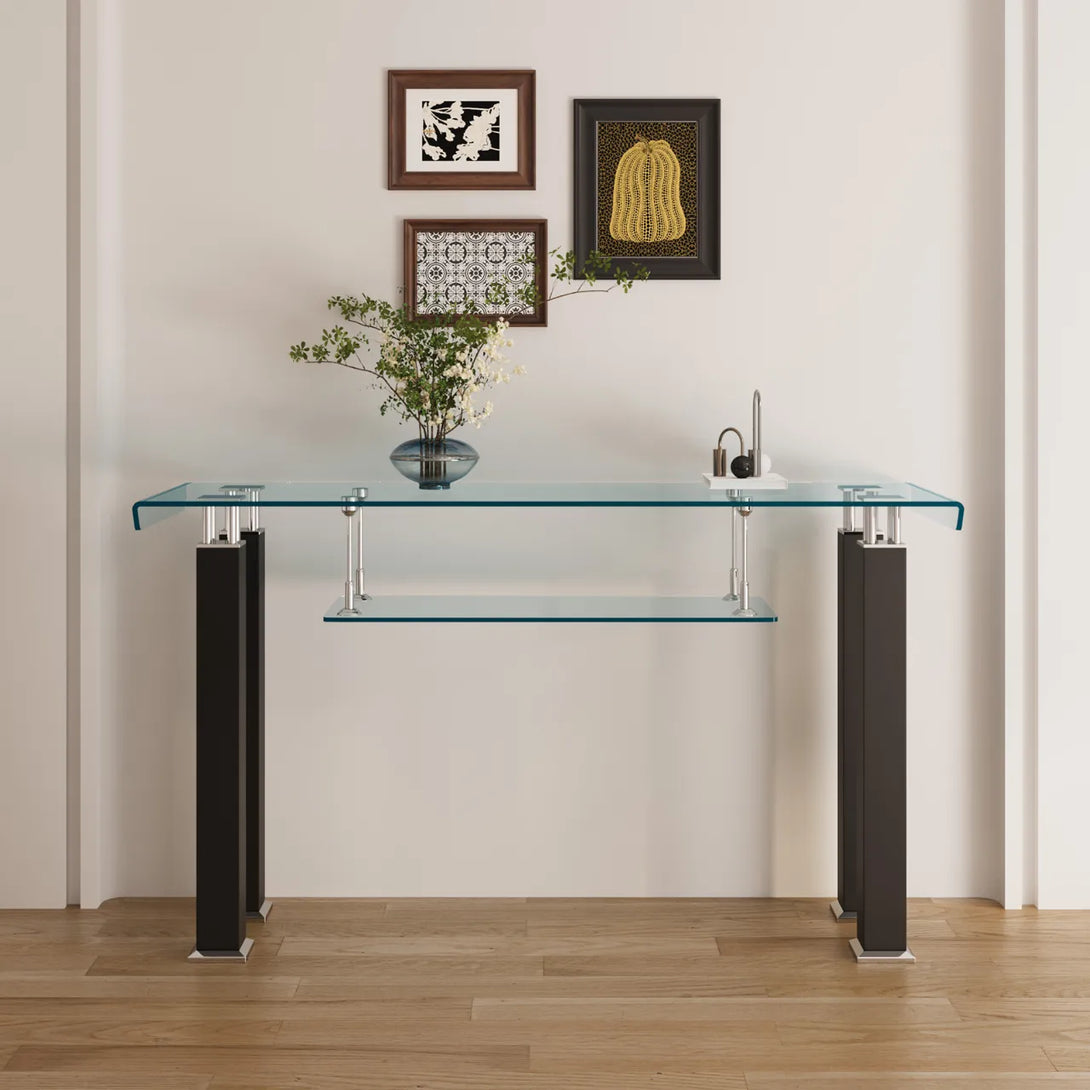 Elevate your home with this modern console table featuring a 10mm tempered glass top and an 8mm inner glass layer for enhanced durability. The sleek leatherette finish in black, white, or grey complements a variety of décors, while the sturdy metal frame ensures stability. Perfect for entryways or living rooms, its spacious yet slim profile offers both style and practicality.