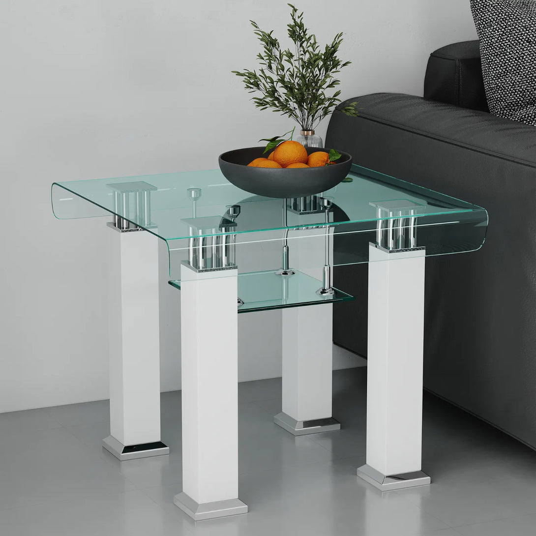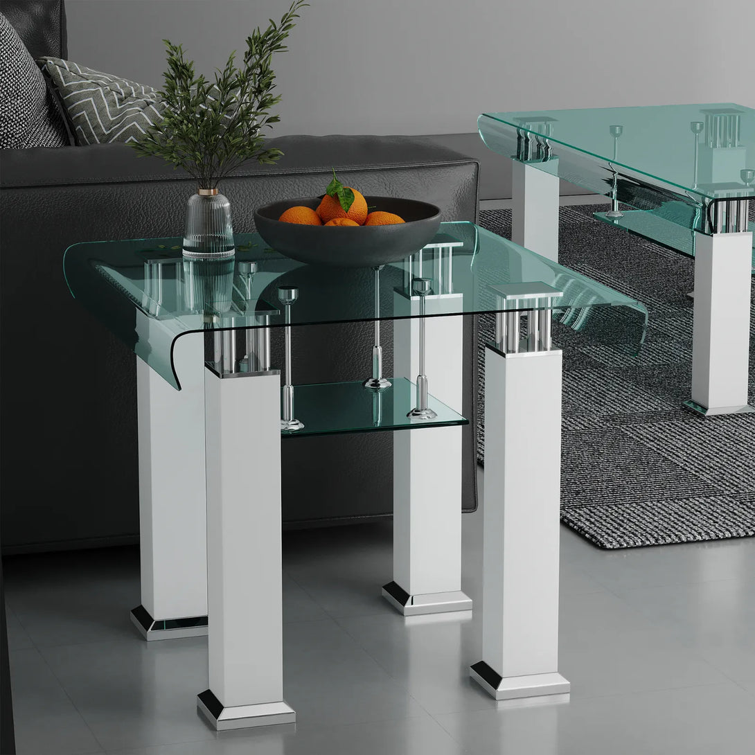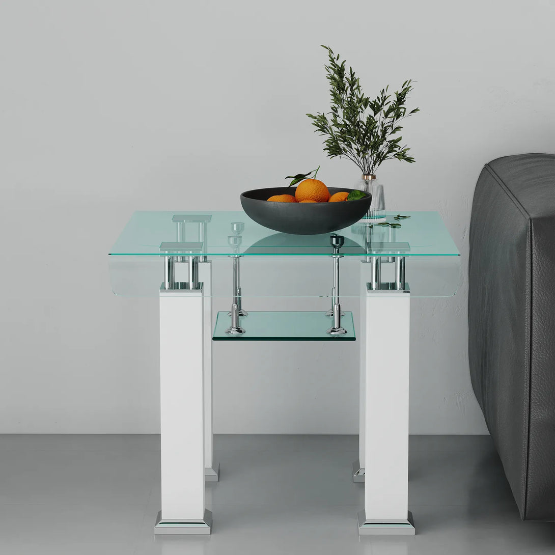 Add modern elegance to your home with this glass end table. Featuring a sturdy metal frame, it combines durability with contemporary style. The 10mm tempered glass top and 8mm inner glass shelf offer ample surface space for décor or essentials, while its compact design fits seamlessly into living rooms, offices, or bedrooms.