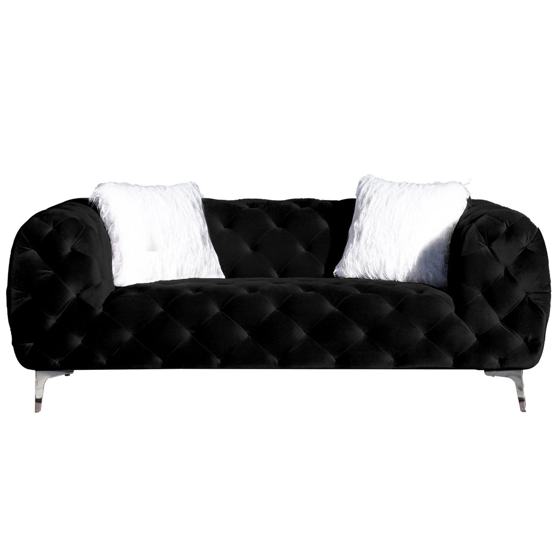 Bring modern elegance and comfort to your home with this velvet sofa or loveseat. Upholstered in soft 100% polyester velvet, it offers a plush seating experience, supported by a durable solid wood frame and high-density foam cushions. Sleek metal legs complete the contemporary design, making it a stylish choice for any living room.