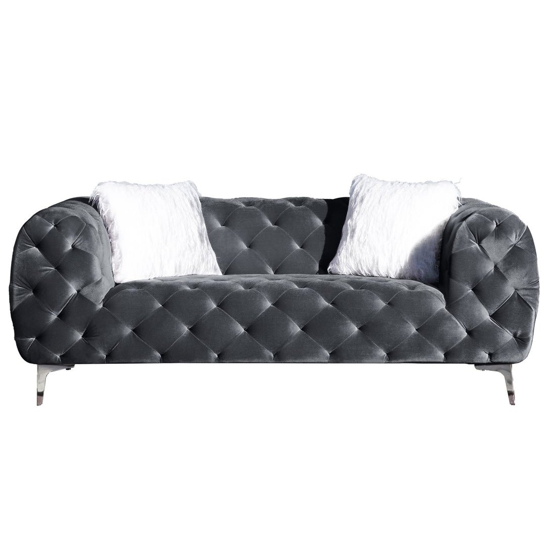 Bring modern elegance and comfort to your home with this velvet sofa or loveseat. Upholstered in soft 100% polyester velvet, it offers a plush seating experience, supported by a durable solid wood frame and high-density foam cushions. Sleek metal legs complete the contemporary design, making it a stylish choice for any living room.
