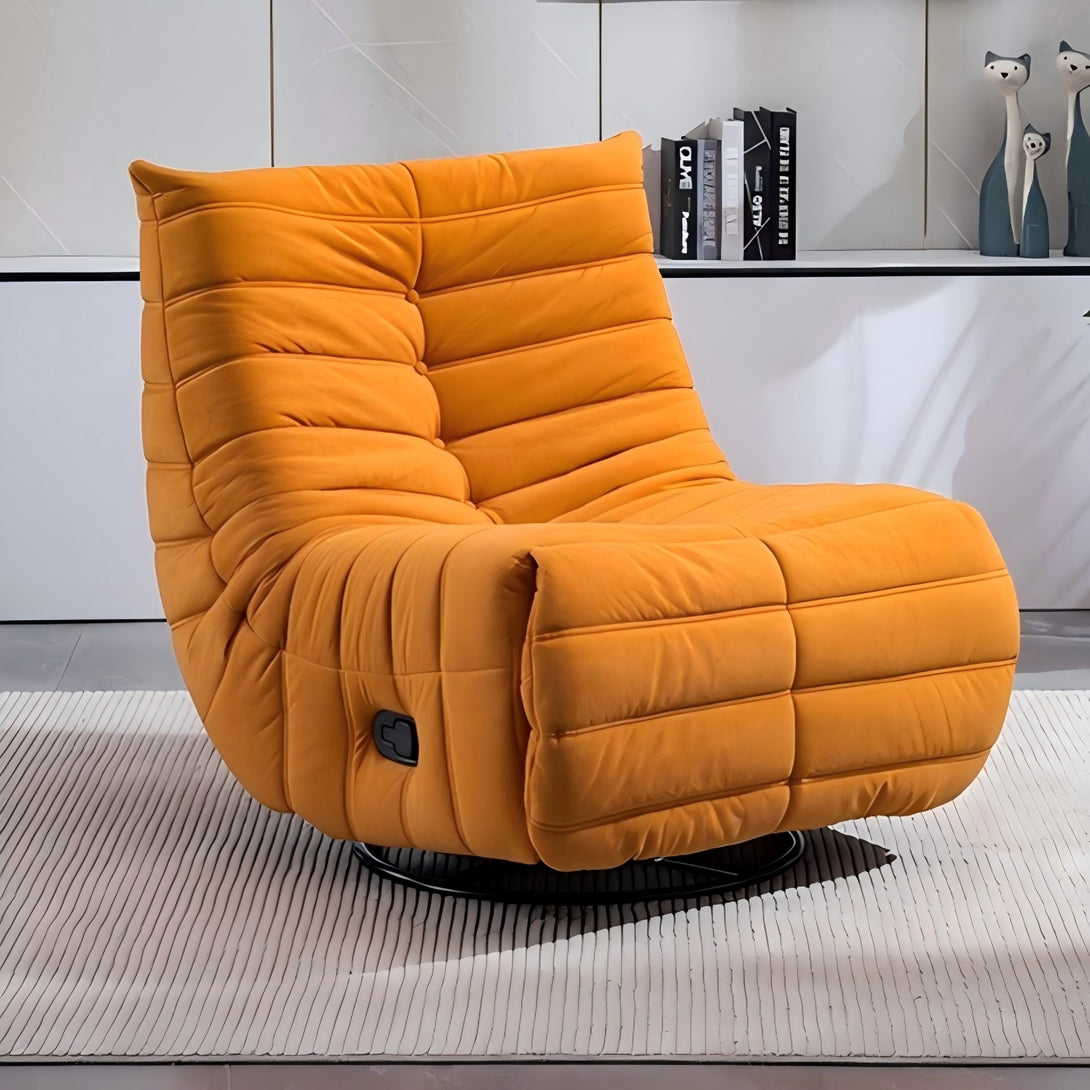 Add a touch of modern elegance and comfort to any space with this stylish upholstered chair. Featuring soft fabric upholstery filled with high-density sponge, it offers exceptional comfort and support. The vibrant orange color brings a lively pop to your living room, bedroom, office, or lounge area. Its thick padding ensures a relaxing experience, while the rotatable design adds convenience and versatility. The chair's sleek, contemporary look makes it a perfect addition to any modern decor. Easy to care for, simply wipe with a soft dry cloth and vacuum regularly to maintain its pristine condition.