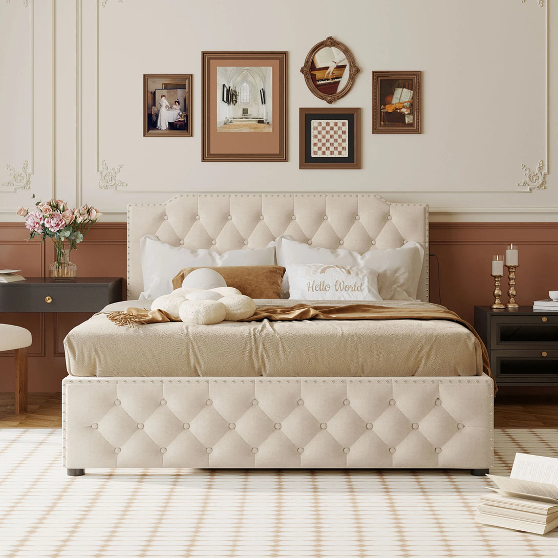 Upholstered Platform Bed and 2 Sets of USB Ports Queen Size