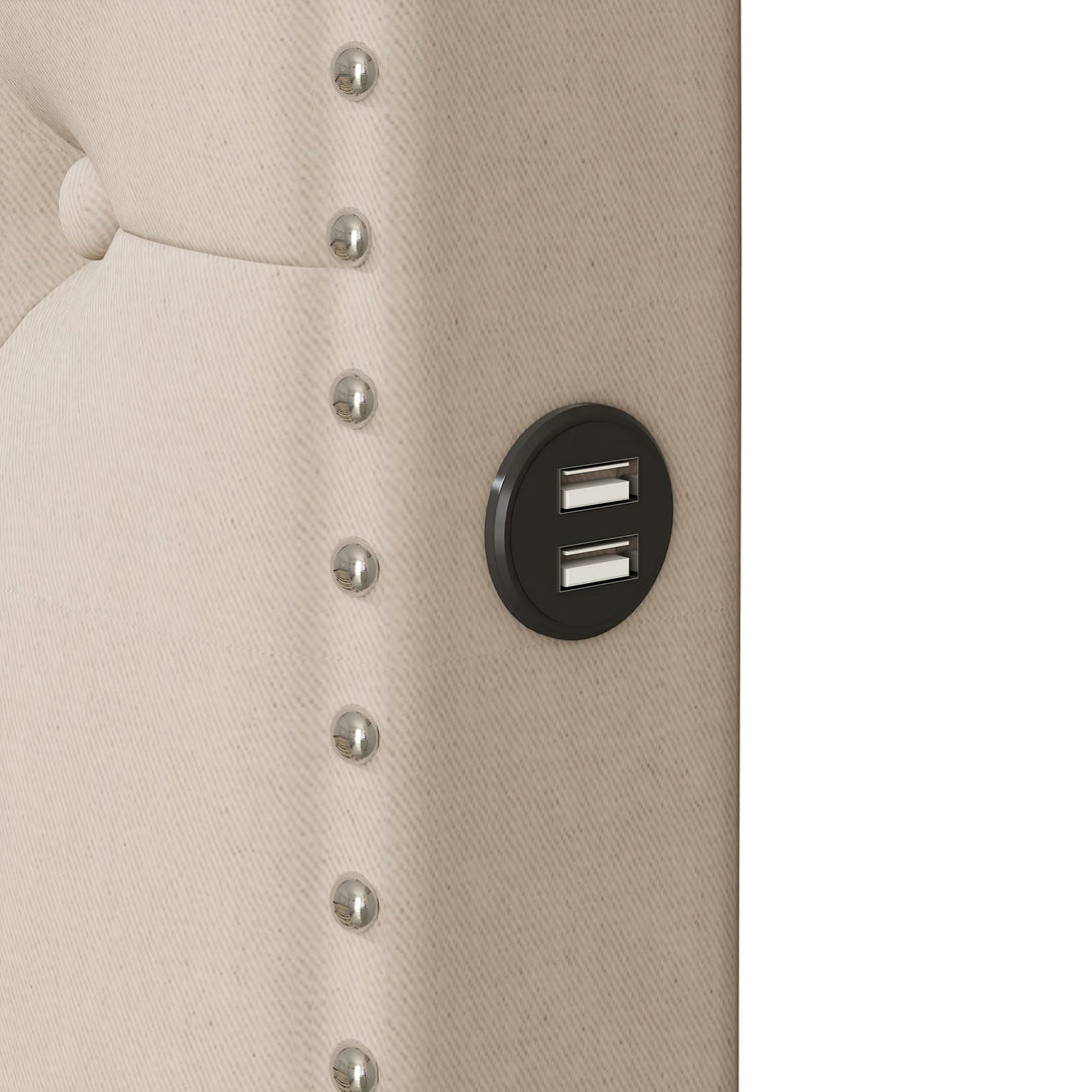 • Upholstered Platform Bed and 2 Sets of USB Ports Queen Size