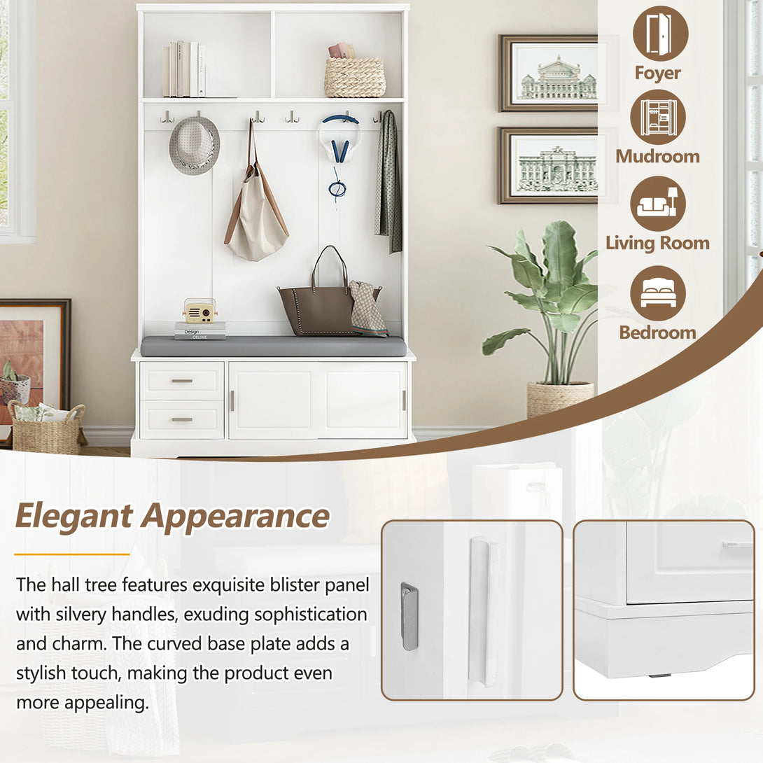 Perfect For: Foyers, mudrooms, living rooms, or bedrooms, offering seating, storage, and hanging space in one stylish unit.