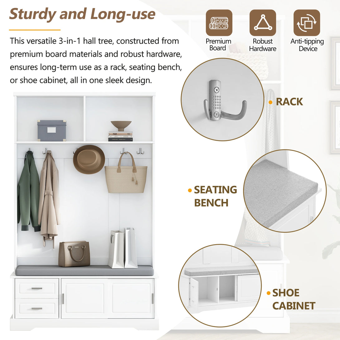 Functionality: 3-in-1 use as rack, seating bench, or shoe cabinet.