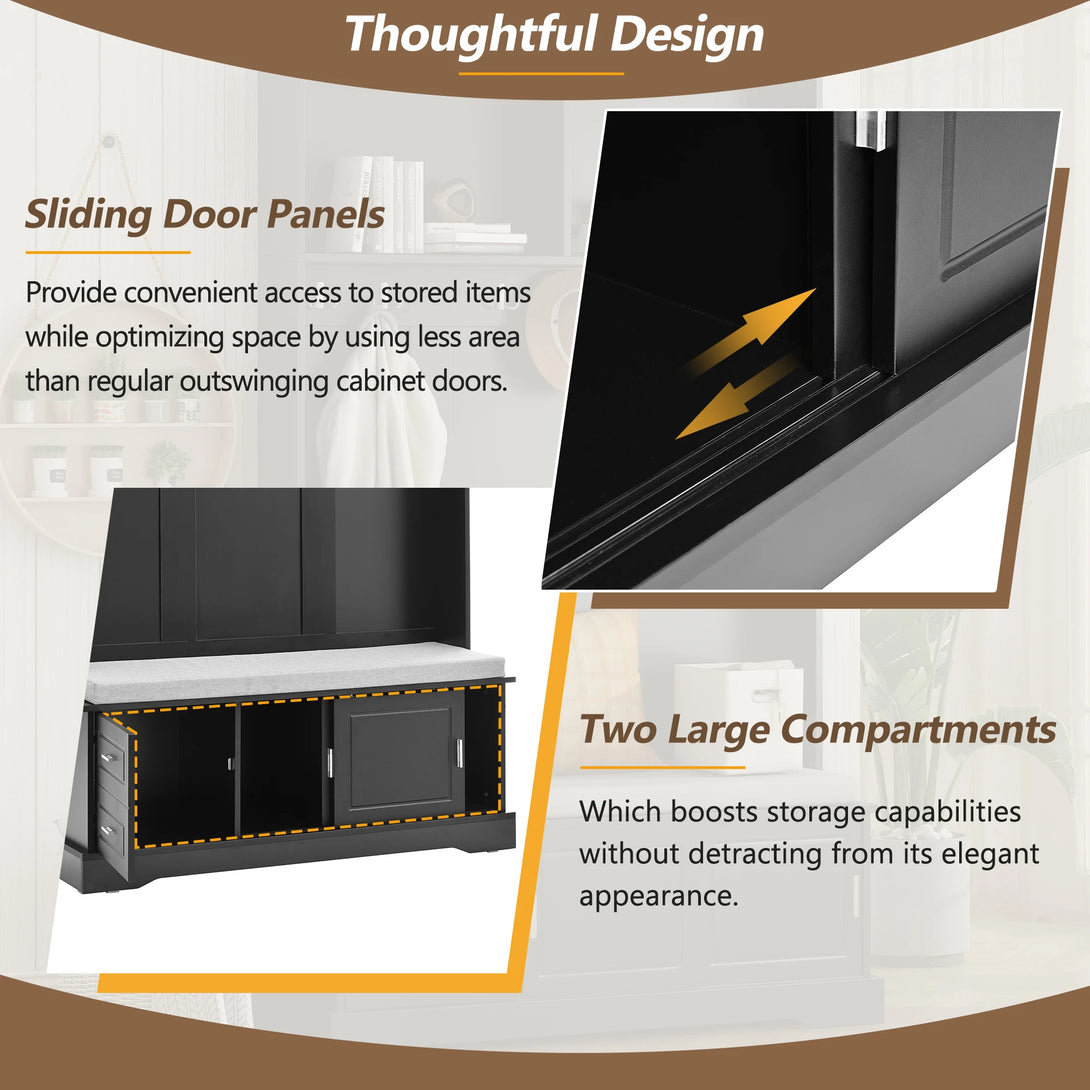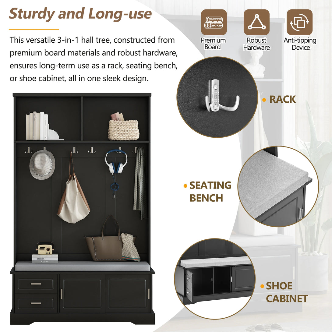 Perfect For: Foyers, mudrooms, living rooms, or bedrooms, offering seating, storage, and hanging space in one stylish unit.